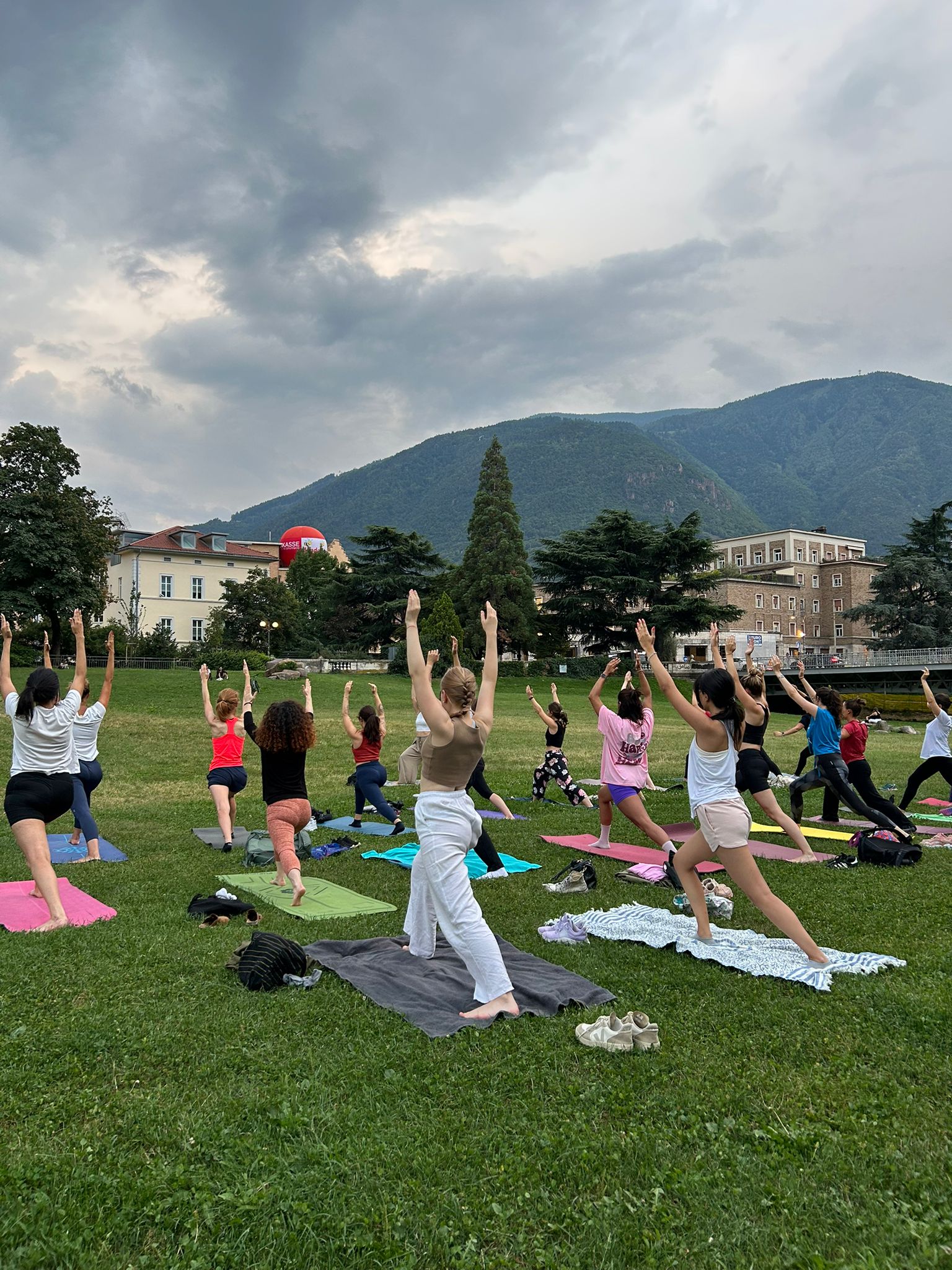 Es war ein bewölkter Tag Ende August, als Mara Fantinel auf den Talferwiesen in Bozen überrascht rund 30 junge Frauen begrüßte. Die Gruppe in Sportklamotten war zusammengekommen, um eine Yoga-Einheit abzuhalten, und nennt sich Le Mädels. Die 27-Jährige Fantinel ist Teil der Initiative, die zur Community SportSouthTyrol gehört. Zusammen mit Daniel Favaro und Nicolò Botrugno koordiniert sie einige der Aktivitäten der Community – von Fahrradfahren und Laufen bis zu Wandern und Yoga.