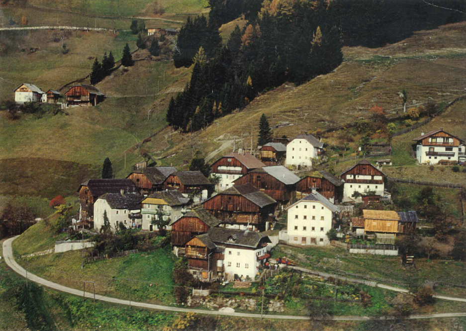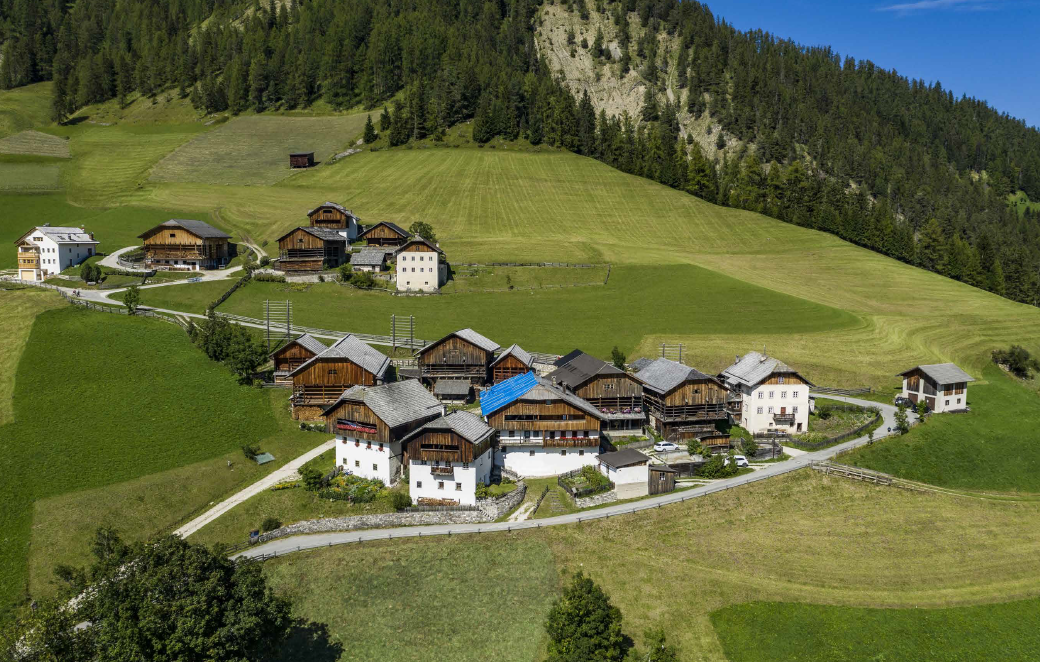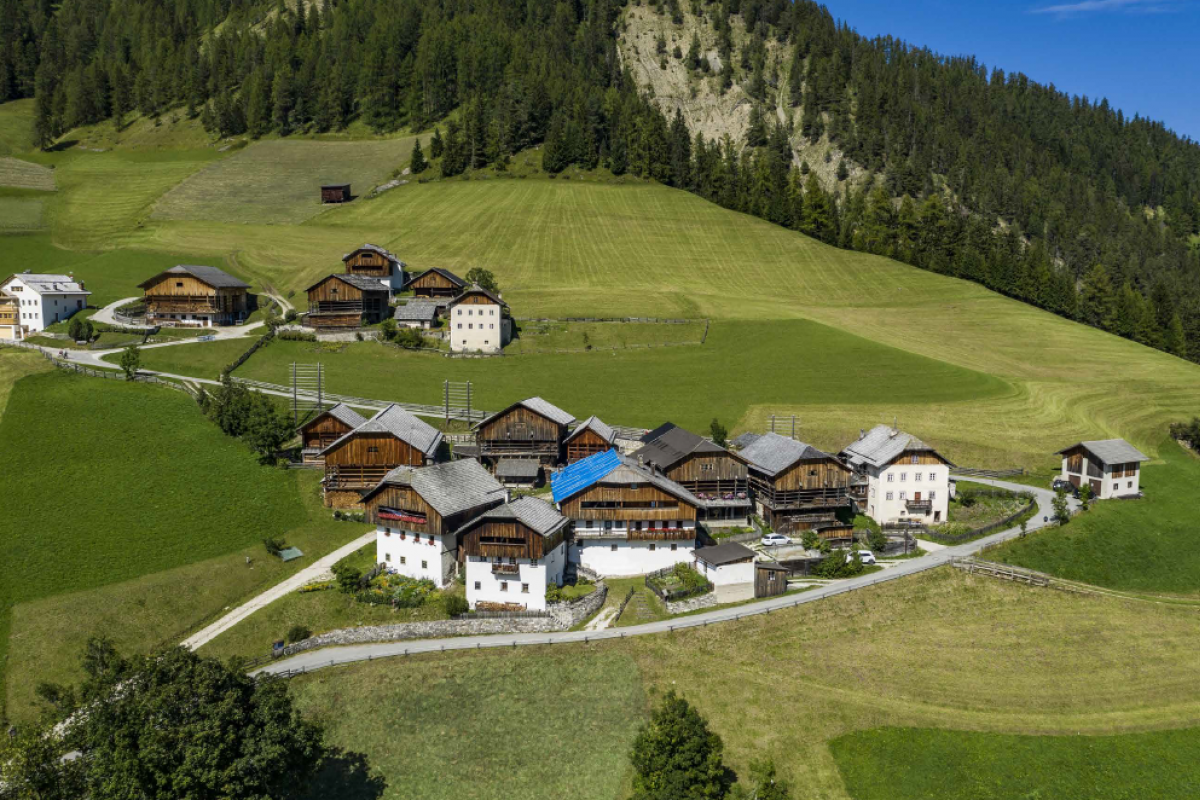 Die spezifische Siedlungsform ist aus den Notwendigkeiten des Raums heraus gewachsen: „Die landwirtschaftlichen Flächen sind aus aufwendigen Rodungen in schwierigem Gelände entstanden, die Gebäude wurden raumsparend angeordnet“, erklärt Piccolruaz: „Es sind kleine Dörfer, die größenmäßig zwischen sechs und maximal zwanzig Gebäuden umfassen.“ Dabei sind es stets Gebäudepaare, die aus einem Wohnhaus und einem Stadel mit Stall bestehen.