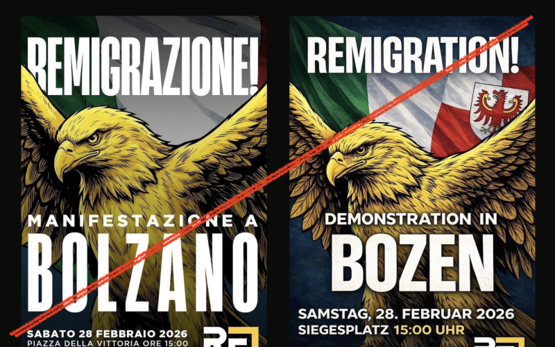 „Organisiert von Casa Pound, sollen Abordnungen von Faschisten und Rechtsextremen aus ganz Italien bei der geplanten Demonstration aufmarschieren. Zeitgenossinnen und Zeitgenossen, auf die wir – auf die Bozen, ganz Südtirol – auch gerne verzichten können“, erklärt die Junge Generation (JG) der SVP in einer Medienmitteilung. Sie spricht sich darin für die Gegendemonstration am Samstag aus.