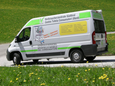 Unterwegs in den Gemeinden: Die fahrende Verbraucherzentrale, ein mit Infomaterial vollgepackter Camper wird von erfahrenen Beraterinnen betreut. Konsumentinnen und Konsumenten wird eine Erstberatung geboten. Foto: Verbraucherzentrale SüdtirolSeit diesem feurigen Start ist die Verbraucherzentrale weniger für das Zündeln als für das Feuerlöschen bekannt. Begonnen hatte alles mit einem Büro in der Zwölfmalgreinerstraße 11, inzwischen sitzen die Mitarbeiterinnen und Mitarbeiter am anderen Ende derselben Straße. Eines der ersten großen Highlights war 1996 die Gründung des Europäischen Verbraucherzentrums in Bozen, erinnert der Mann der ersten VZS-Stunde. „Wir waren für ganz Italien zuständig. Jeder Italiener und jede Italienerin konnte sich an Bozen wenden, wenn es ein Problem im EU-Raum gab.“ Bozen war gleichzeitig auch Sitz des österreichischen Europäischen Verbraucherzentrums. Der Grund: Österreich war damals noch nicht Mitglied der EU. Diese Arbeit erfolgte im Rahmen einer grenzüberschreitenden Zusammenarbeit. „Bozen war damit ein Kern des Verbraucherschutzes in beiden Ländern.“
