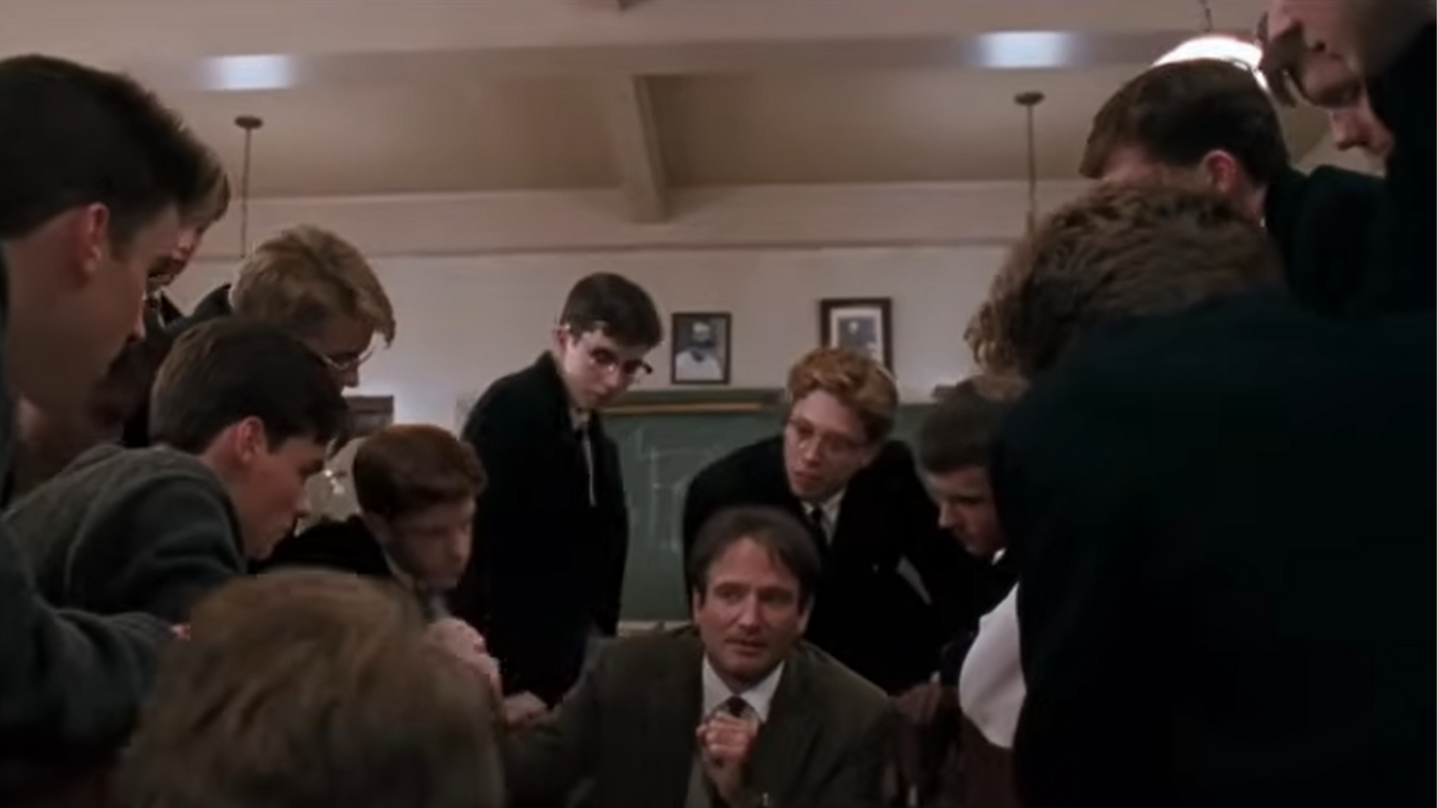 Aber darum geht es nicht. In „Der Club der toten Dichter“ geht es darum, dass der moderne Englischlehrer Mr. Keating seinen durchwegs männlichen Schülern eines Elite-Internats im Jahr 1959 beibringt, dass „wir nicht nur so zum Spaß Gedichte schreiben und lesen“, sondern weil wir zur Spezies Mensch gehören, dass wir - wie Henry David Thoreau schreibt, uns um die „essential facts of life“ kümmern sollten - carpe diem, eben! - damit wir nicht, „wenn es zum Sterben ginge, einsehen müssten, dass wir nicht gelebt hätten.“