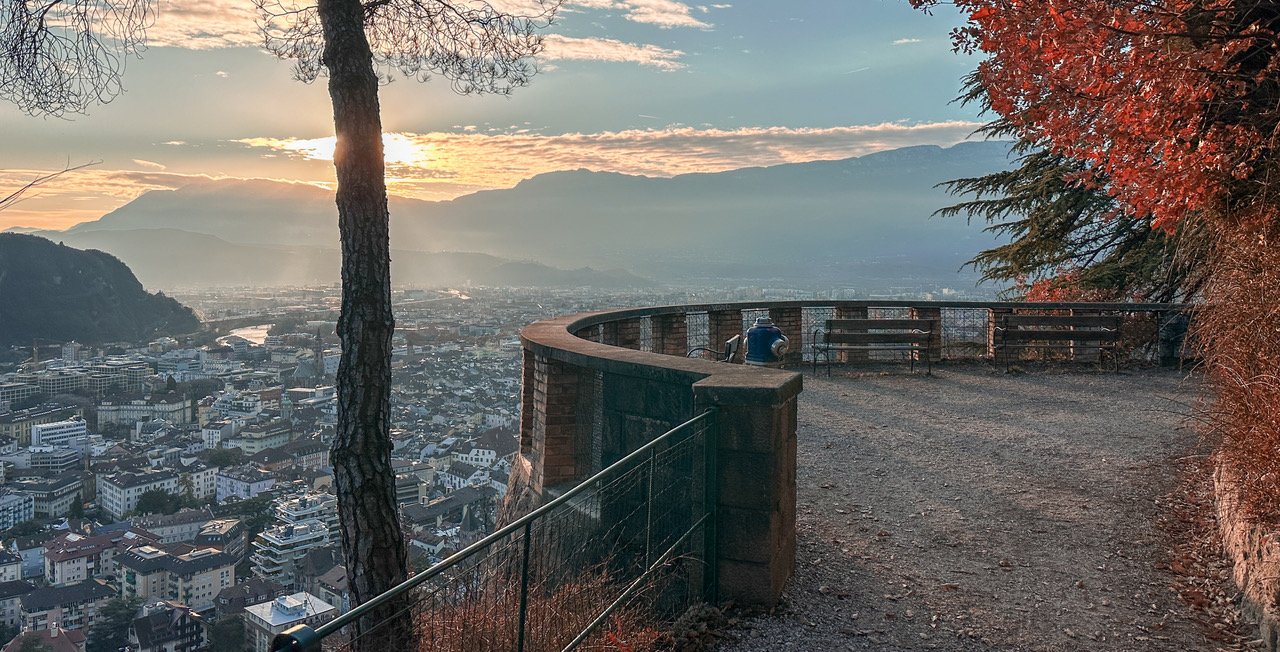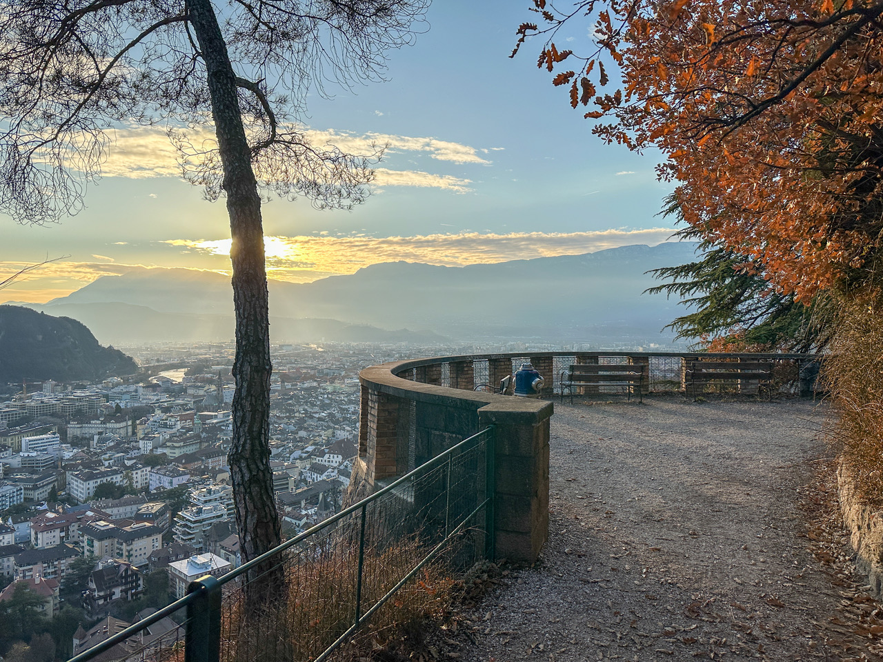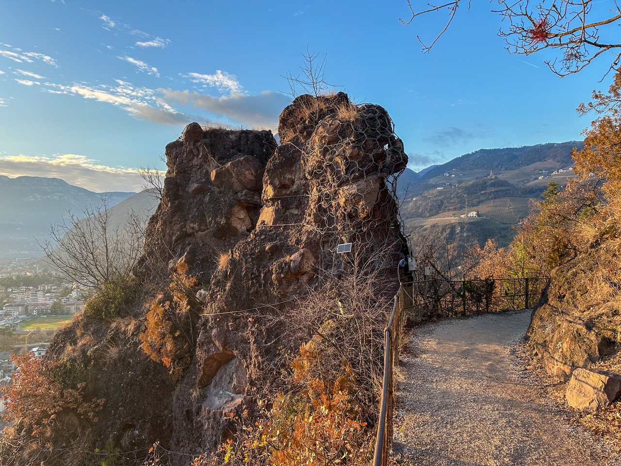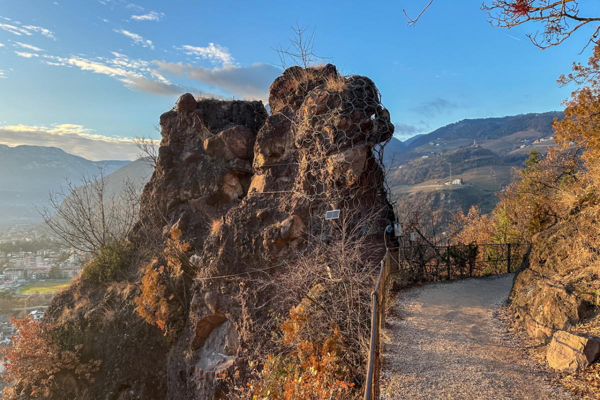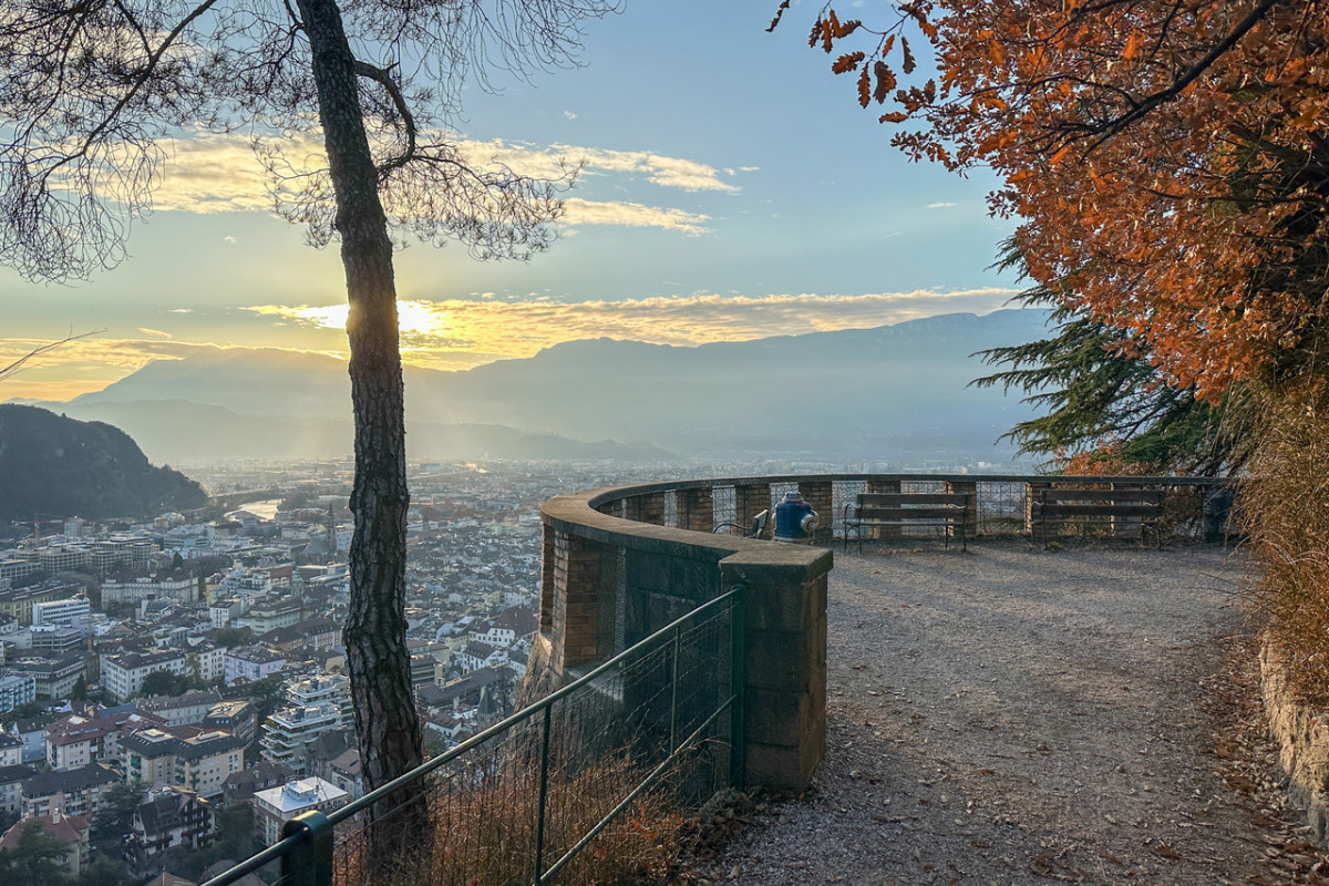An diesem Südhang am Fuße des Rittens unternehmen wir eine Rundwanderung, kombinieren dabei die Oswaldpromenade mit einem kurzen Stück des Keschtnweges und einem etwas abenteuerlichen Steig, der von der Schützenkompanie Bozen angelegt wurde. Gerade in der Winterzeit sind diese sonnenexponierten Hänge ein ideales Wanderziel, wo wir südliche Vegetation erleben und eine wunderbare Aussicht zu den Dolomiten mit dem Rosengarten, über die Stadt und das Etschtal genießen.
