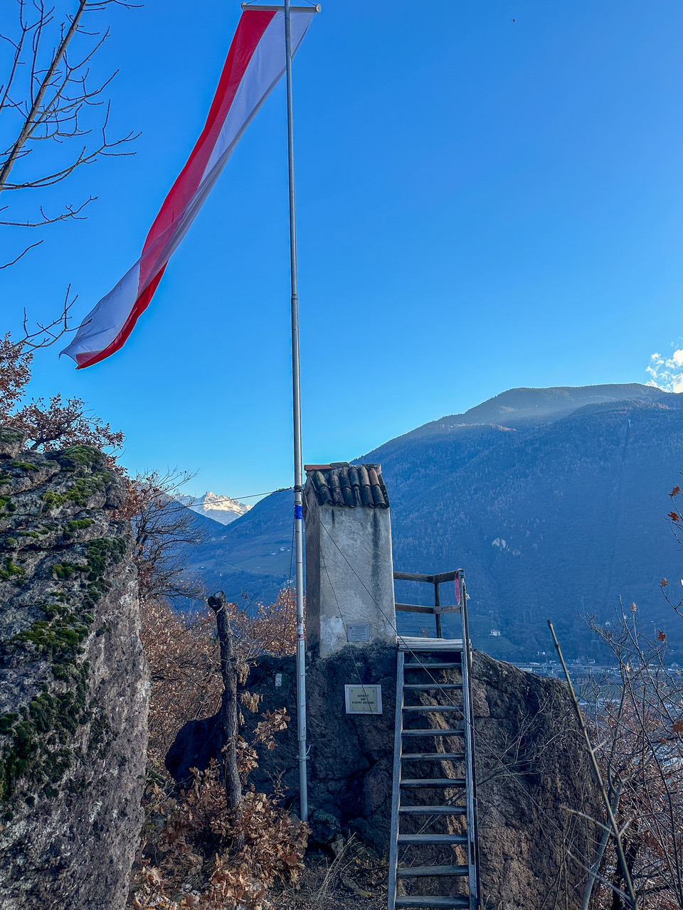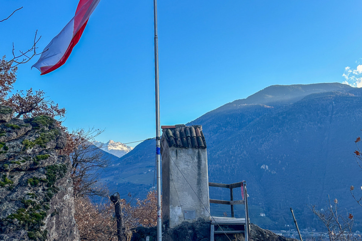 Auf dem felsdurchsetzten Rittner Südhang oberhalb von Hörtenberg und dem Stadtteil St. Oswald flattert eine Tirolerfahne, wie kommt die dorthin? Bei unserem Rundweg wird dieses Geheimnis gelüftet! Die steilen Hänge nördlich von Bozen, zwischen den Weindörfern St Magdalena und St. Peter, sind von felsdurchsetztem Buschwald überzogen.