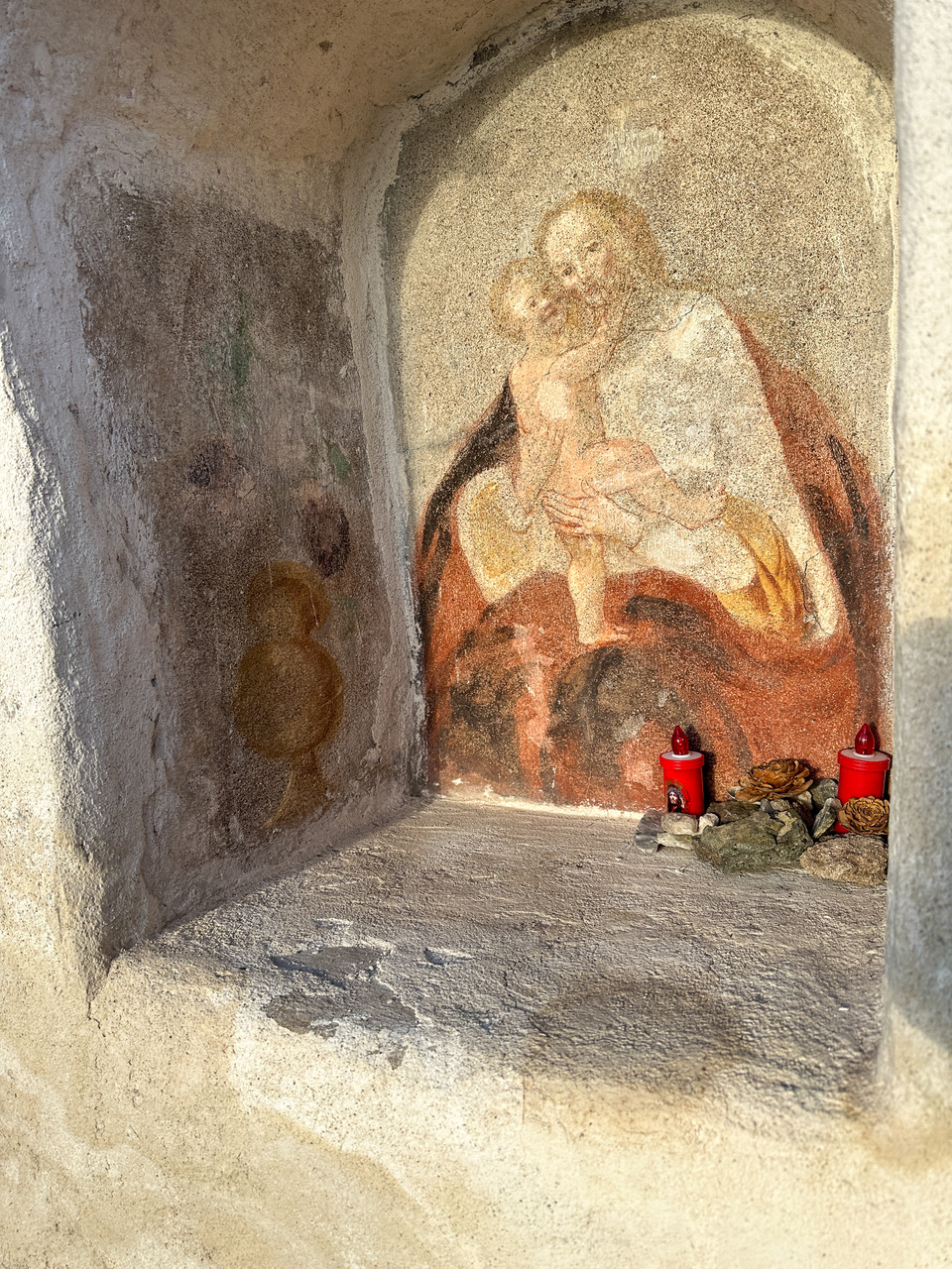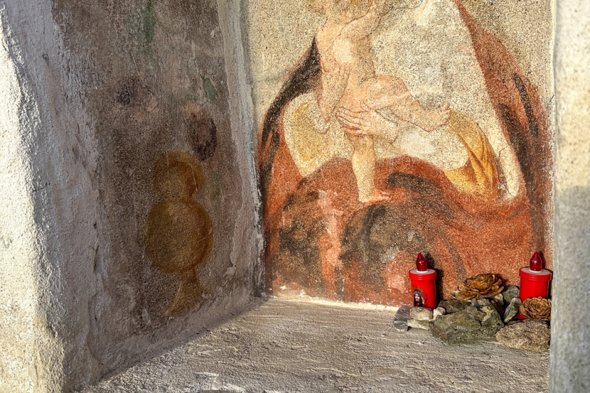 Es geht mit prächtigem Blick auf den Bozner Talkessel leicht bergab, spärliche grün-weiße (die Farbe der Schützen) Markierungen weisen darauf hin, dass die Schützen diesen Steigabschnitt vor Jahren ausgebessert haben. Bei einem Aussichtspunkt steht ein Bildstock zum hl Sebastian und an einem 12 m hohen Metallmast weht die Tiroler Fahne.