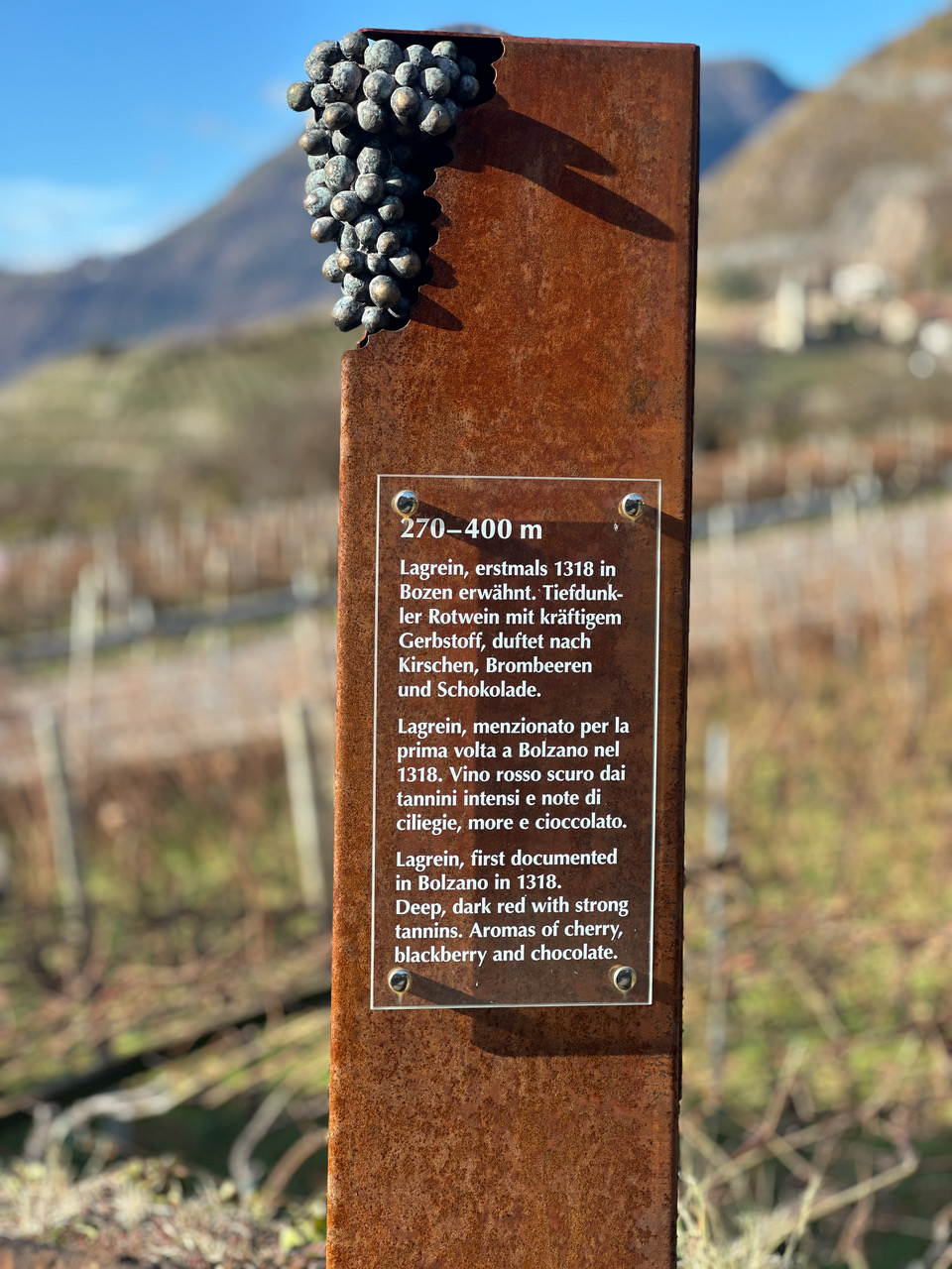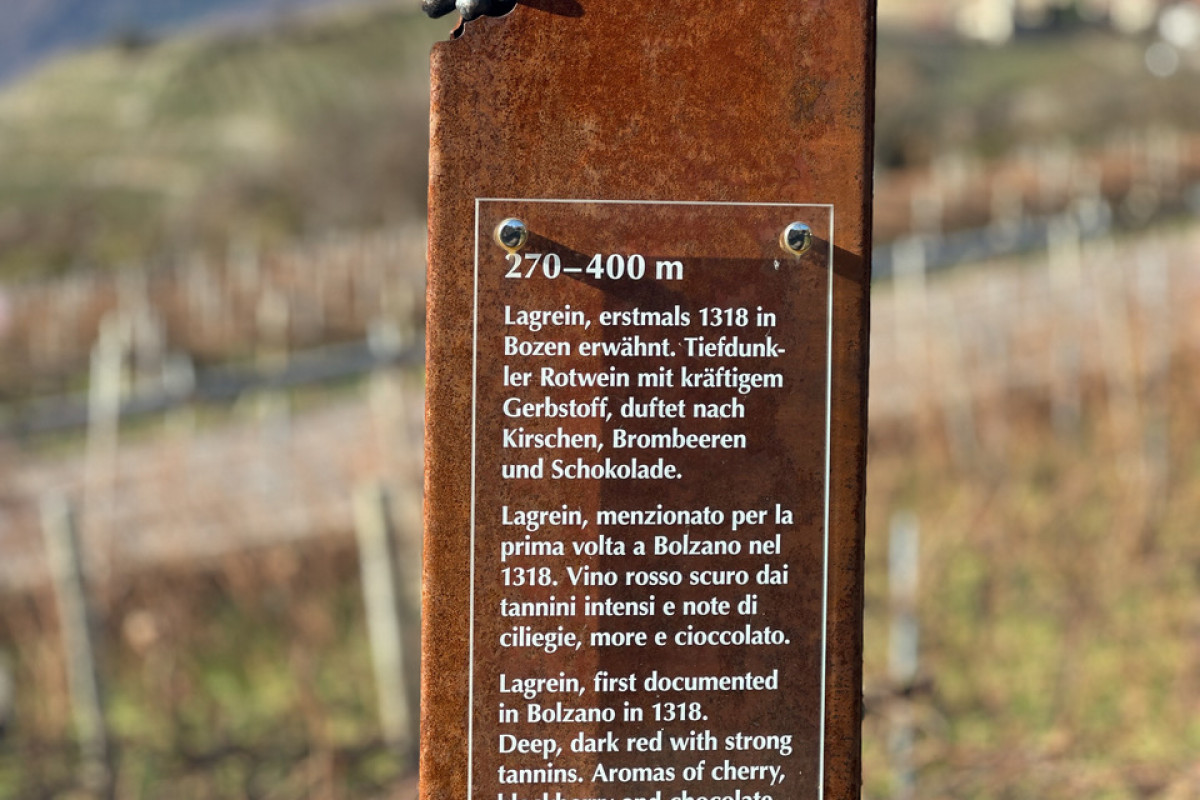 Der Weinwanderweg quert eine der schönsten und besten Weinlagen Südtirols. Entlang des Weges finden sich neben künstlerisch gestalteten Installationen viele erklärende Schilder, die knapp, aber sachlich über Weinbau, Lagen, Rebsorten, Bodenbeschaffenheit, Besonderheiten von Vegetation und Erziehungssystemen berichten.