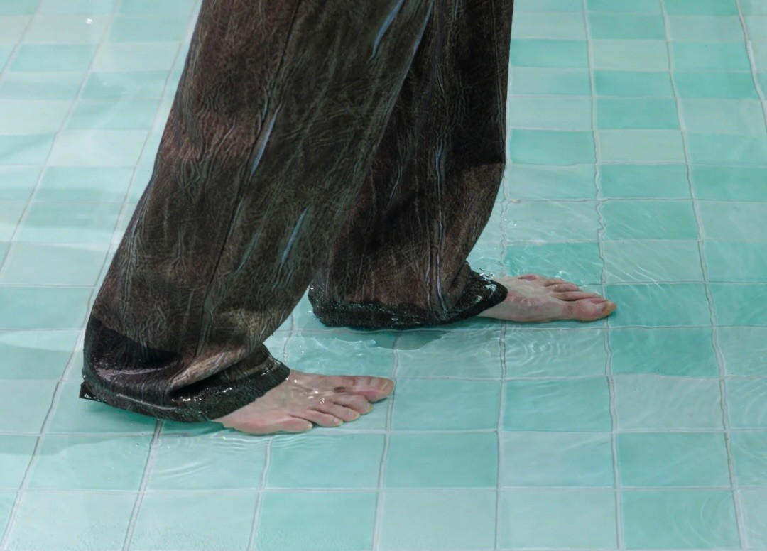 Die Aufführung im Bozner Stadttheater ist körperlich intensiv. Das Wasser reicht dem Schauspieler bis zum Hals und zum Hosenende.