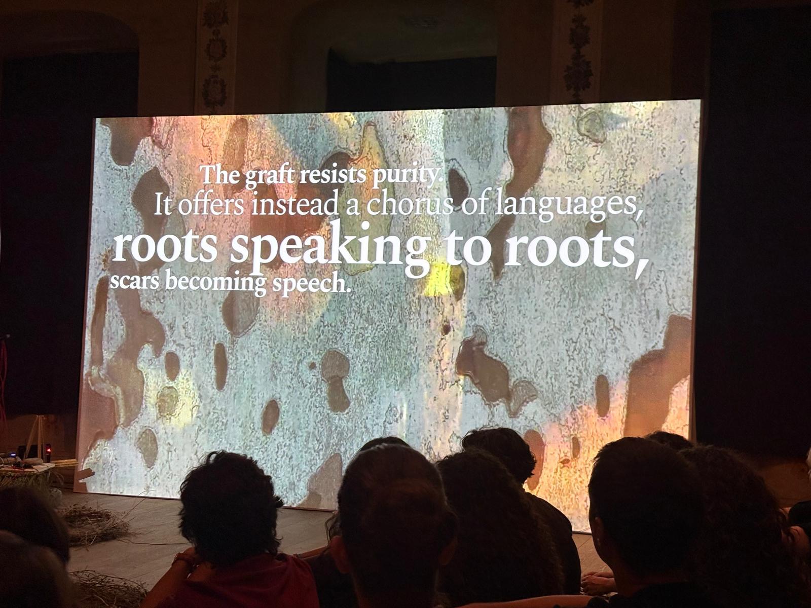 In diesem Plutiversum von Pflanzenbeziehungen werden bestehendes Wissen, Sprache und Beziehung zum Werkzeug der Sichtbarkeit. Es dient zur Infragestellung und Aufgliederung von Kategorien und plädiert für eine Gemeinschaft, die auch das Nicht-Menschliche als Gleichwertig in die Gesellschaft mit einbezieht und Gemeinschaften in Symbiose miteinander sieht.