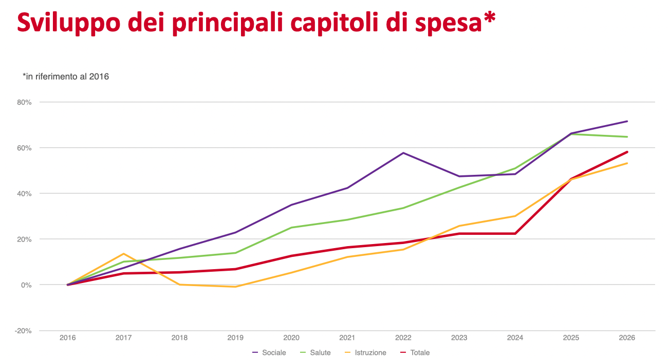 • Il bilancio di previsione della Provincia autonoma di Bolzano per il 2026 ammonta a 8,76 miliardi di euro, superando il valore dell'anno precedente pari a 8,13 miliardi di euro. Nella sua seduta di oggi, 31 ottobre, la Giunta provinciale ha approvato il disegno di legge – che ora sarà trasmesso al Consiglio provinciale per la discussione e l’approvazione definitiva. “Abbiamo un bilancio solido e allo stesso tempo flessibile, che garantisce tutti i servizi esistenti e definisce nuove priorità”, ha affermato il presidente della Provincia Arno Kompatscher. “Non è una legge naturale che ci sia una crescita di alcune voci di bilancio: si tratta di scelte politiche, soprattutto in ambiti come sanità e sociale, dove l’aumento dei costi è legato anche al personale – insegnanti, medici – e alle decisioni politiche che abbiamo preso”.