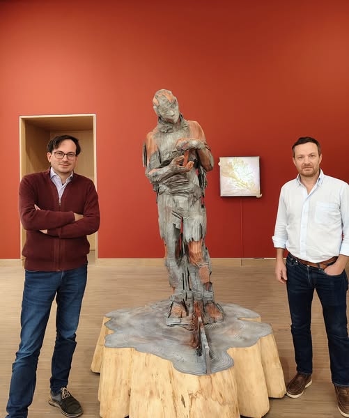 Sich ein Bild machen: Neben Arbeiten von Marina Abramović, VALIE EXPORT, Hermann Nitsch, Arnulf Rainer oder eben Martin Kippenberger, sind auch einige Arbeiten von Südtiroler Künstlerinnen und Künstler zu sehen. Etwa von Aron Demetz (im Bild mit Günther Oberhollenzer), Paul Sebastian Feichter, Siggi Hofer, Sissa Micheli, Sylvie Riant und Thomas Sterna. Foto: PrivatEinen guten Monat lang – die Ausstellung wurde am 22. Oktober vor insgesamt 900 Besucherinnen und Besuchern eröffnet – gab es „nur wohlwollende Rückmeldungen“, so Oberhollenzer, alle großen Medien wie die ZiB1 im ORF, Ö1-Mittagsjournal, Presse, Kurier, Standard, Krone haben berichtet, und „alle waren positiv bis sehr positiv – mit höchstens ein paar kritischen Anmerkungen“. Auch die Kirchenzeitungen von Wien und Linz fanden die Ausstellung ausgewogen und stimmig, und der ansonsten „sehr kritische Falter“ kommentierte „teuflisch gut“. Der österreichische Künstler und Kunstvermittler und seit 2017 Diözesanbischof von Innsbruck, Hermann Glettler, sprach sogar „eine Empfehlung aus, die Ausstellung anzusehen“, auch Dompfarrer Toni Faber widmete der Schau einen Kommentar in der Zeitung Kurier.