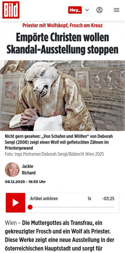 Haben uns die Ausstellung gerade vorige Woche angeschaut. Wenn man sie nur auf das Augenscheinlichste reduziert, ist es leicht Anstoß bei den Bigotten zu erregen, die suchen eh nur Anhaltspunkte, um an der Empörungsspirale drehen zu dürfen. Wenn man sich auch mit den Texten auseinandersetzt, sieht man sehr wohl viel mehr, und auch oft sehr viel Respekt gegenüber dem Kern der Religion. In Ruhe anschauen, die Werke unvoreingenommen wirken lassen, die Begleittexte lesen... Alles halb so wild.
