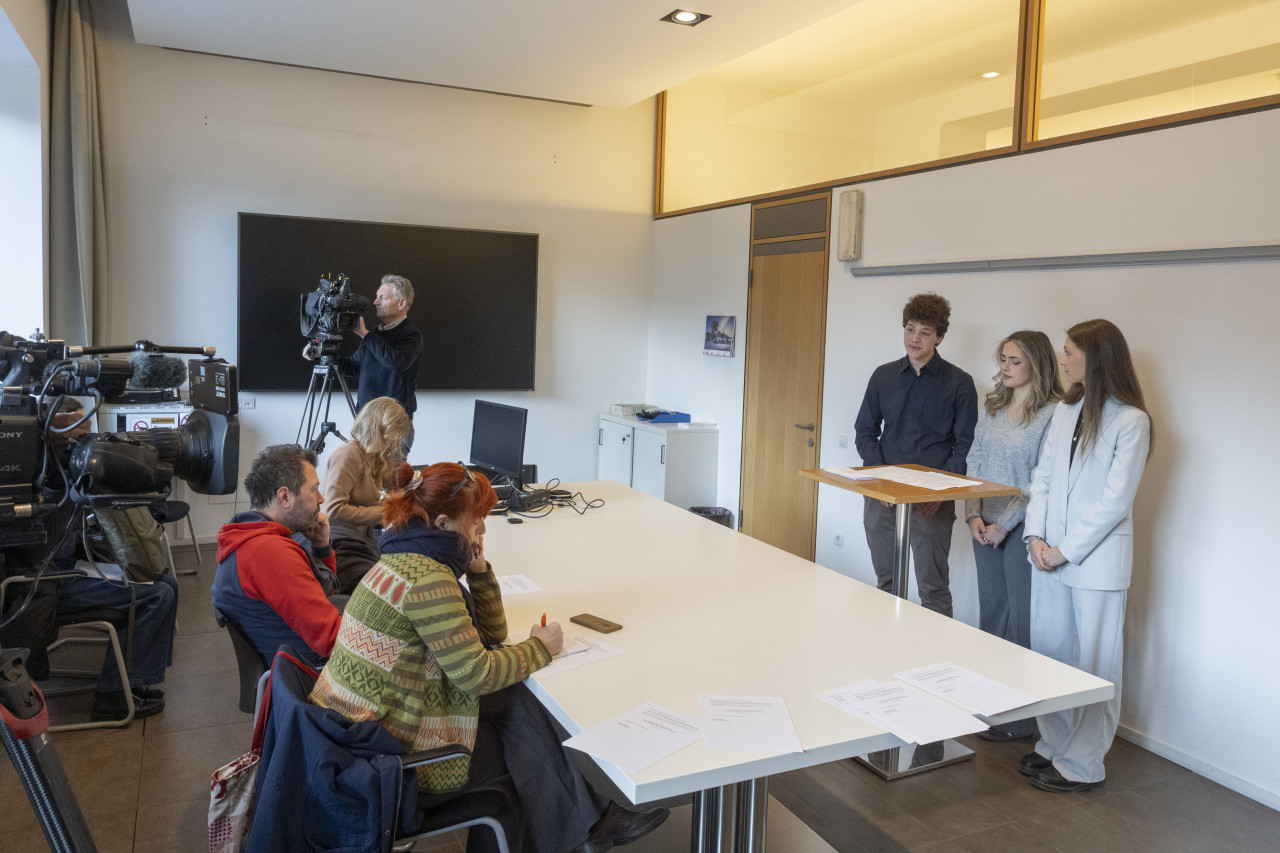 • Im Landhaus 11: Der Schülerbeirat musste kurzfristig den Pressesaal verlassen, weil das Landespresseamt den Pressesaal selbst benötigte. Foto: Seehauserfoto