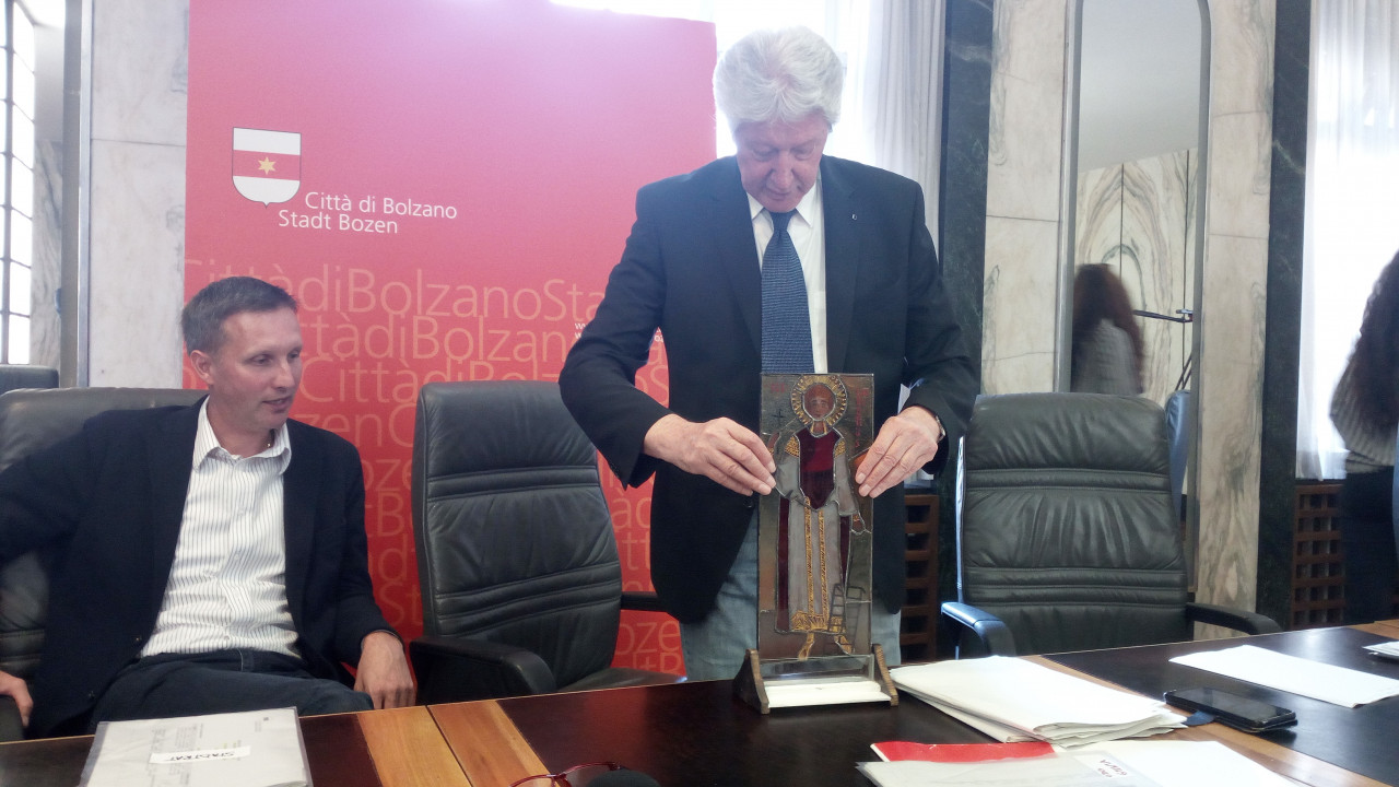 Non volevo dare la risposta ufficiale prima di avere il santo che mi protegge”. Renzo Caramaschi esordisce così nel giorno dell’annuncio - atteso - sulla sua ricandidatura a sindaco di Bolzano. L’effige in vetro colorato commissionata ad un’artigiana di via Roma (Ester) non c’entra con il bis, spiega il diretto interessato. Tuttavia, l’icona che raffigura il santo del terzo secolo dopo Cristo, martirizzato sulla graticola per volere dell’imperatore romano Valeriano, è in bella mostra dietro di sè. La veste rossa, come il colore della città. Caramaschi prende in mano il vetro lavorato, spiega scherzando che si sente più tranquillo e poi annuncia la sfida che lo attende. Una nuova discesa da tecnico, quale continua a volersi dipingere, nell’agone politico cittadino che si è animato come un vespaio alla notizia. E nel quale gli avversari - dentro e fuori dal perimetro degli alleati (da rinsaldare) - non mancano.
