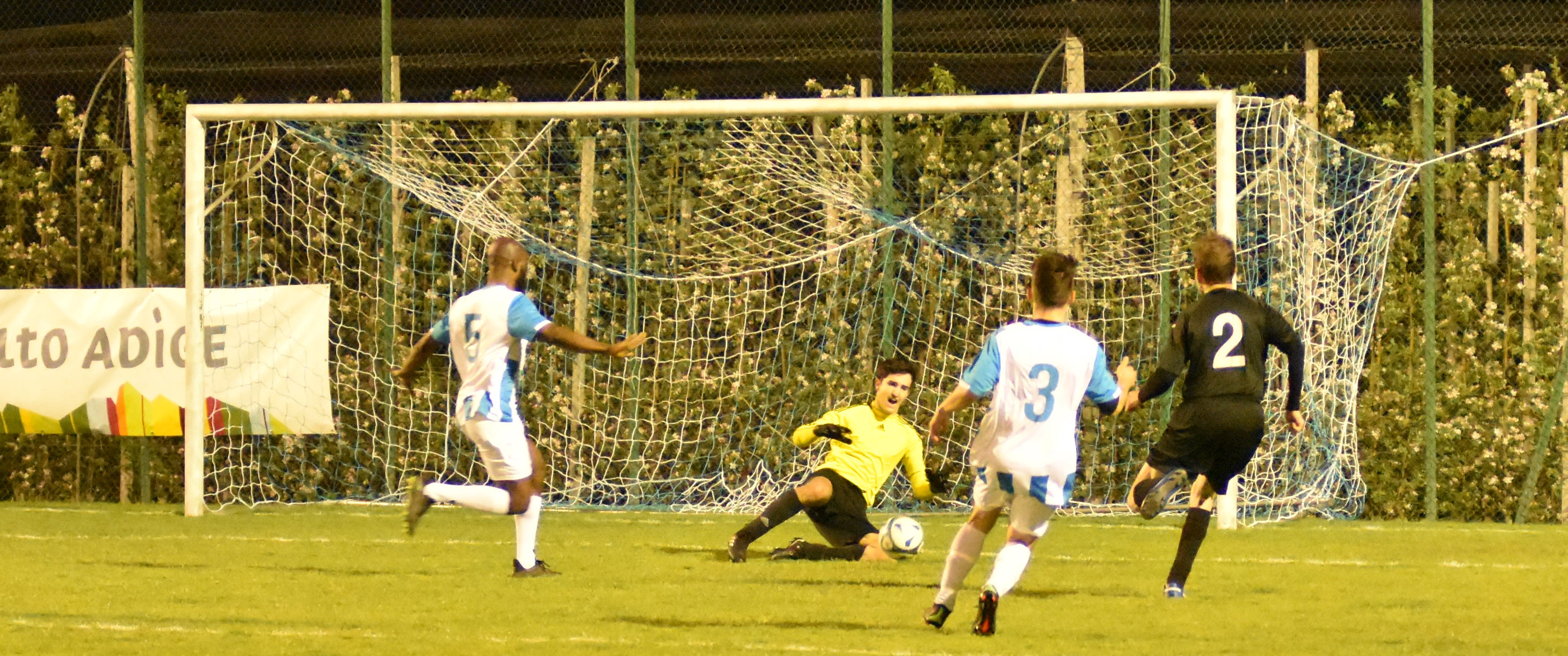 All’andata non era andata molto bene, il punteggio finale di 6 a 0 per il Postal ricordava più una partita di tennis che di calcio. Per questo i ragazzi dell’Excelsior, nella fredda serata del venerdì pasquae, scendono in campo decisi a rendere la vita difficile agli avversari. E forse è proprio Excelsior la prima a stupirsi di come la partita sia da subito saldamente in mano ai bolzanini, che costruiscono gioco, attaccano e schiacciano gli avversari nella loro metà campo. Un Excelsior così si vede raramente (purtroppo) e, dalla panchina, giocatori e dirigenti si “gustano” ogni minuto dell’insolito spettacolo. Il Postal gioca di rimessa, ma raramente riesce a rendersi pericoloso contro l’attenta difesa dell’Excelsior, tanto che l’uomo ragno Davide Ferrante è chiamato solo a semplici prese, difficilmente definibili come vere e proprie parate. Il Postal di oggi può segnare solo con un episodio, che puntualmente trova al 25° minuto: l’arbitro assegna infatti un rigore per l’atterramento di un attaccante del Postal che qualche minuto dopo realizza con un bel tiro angolato su cui il bravissimo Ferrante arriva un nanosecondo in ritardo.