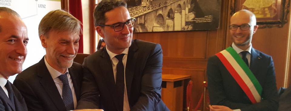 È “fatta”, oggi (13 febbraio) a Cortina la firma è stata posta in calce all’accordo fra Alto Adige e Veneto sul progetto del treno delle Dolomiti che collegherà la Val Pusteria con il Cadore. “L’accessibilità è una delle priorità della giunta provinciale nel settore della mobilità pubblica, non solo in Alto Adige ma in un’ottica transfrontaliera. Il treno è il mezzo del futuro, si tratta di un progetto ambizioso ma realistico, con un enorme potenziale per lo sviluppo delle Dolomiti e la valorizzazione dell'area patrimonio mondiale UNESCO, non solo dal punto di vista turistico ma anche culturale e sociale”, ha affermato il presidente della Provincia di Bolzano Arno Kompatscher concretizzando l’intesa insieme al governatore del Veneto Luca Zaia e dunque siglando il protocollo di intesa che avvia lo studio di fattibilità del progetto. Un’iniziativa plaudita dal ministro delle infrastrutture e trasporti Graziano Delrio presente alla firma insieme ai parlamentari Hans Berger e Daniel Alfreider, all'assessore provinciale alla mobilità Florian Mussner e ai sindaci dei Comuni interessati del comprensorio Pusteria e Badia.