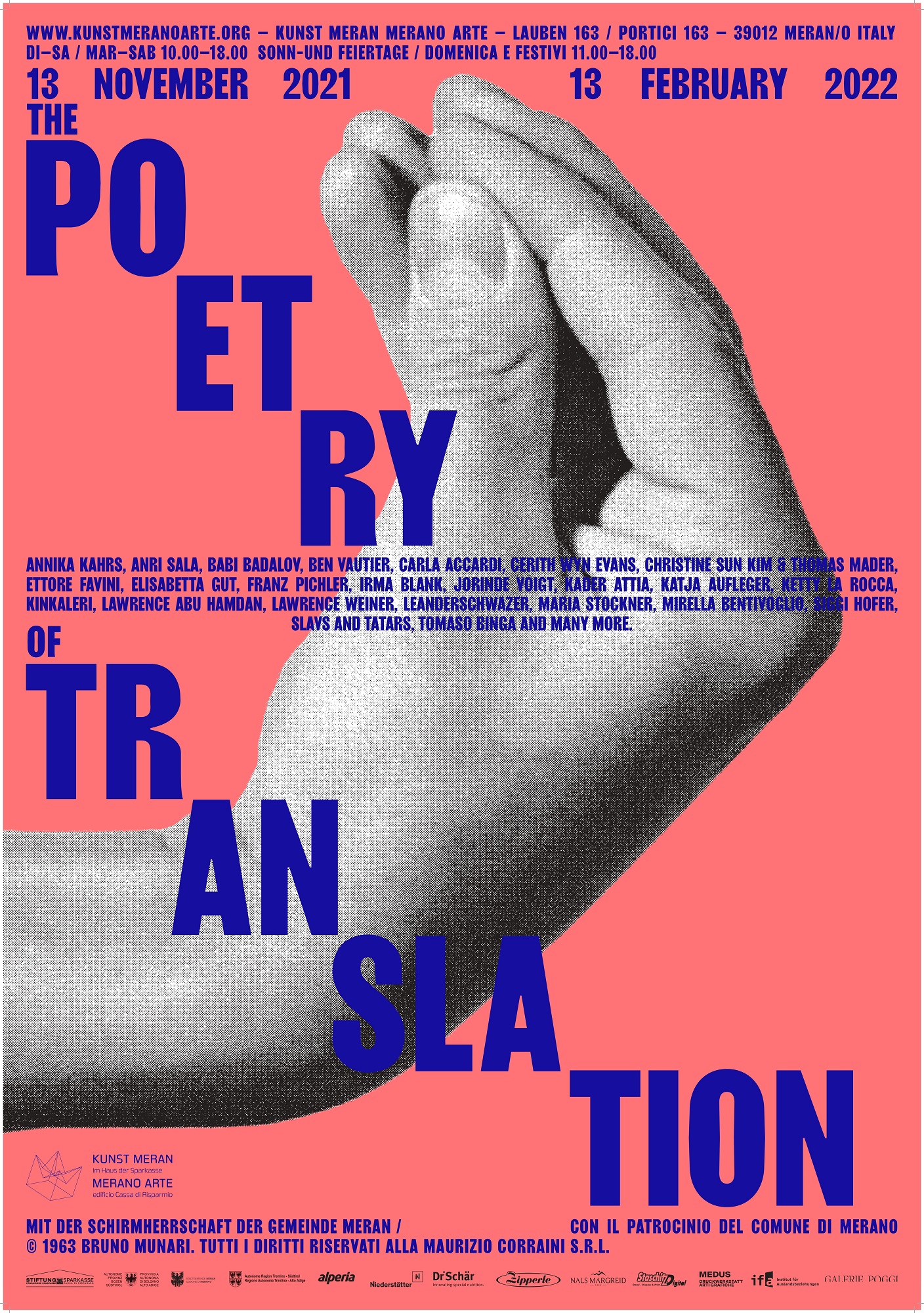Inspiriert von der gelebten Mehrsprachigkeit in Südtirol und seiner bewegten Geschichte interethischen Zusammenlebens, bietet Kunst Meran Merano Arte den idealen Kontext für eine Ausstellung, die sich der Übersetzung widmet und Fragestellungen zu Identität, Multikulturalismus und Diversität aufruft.