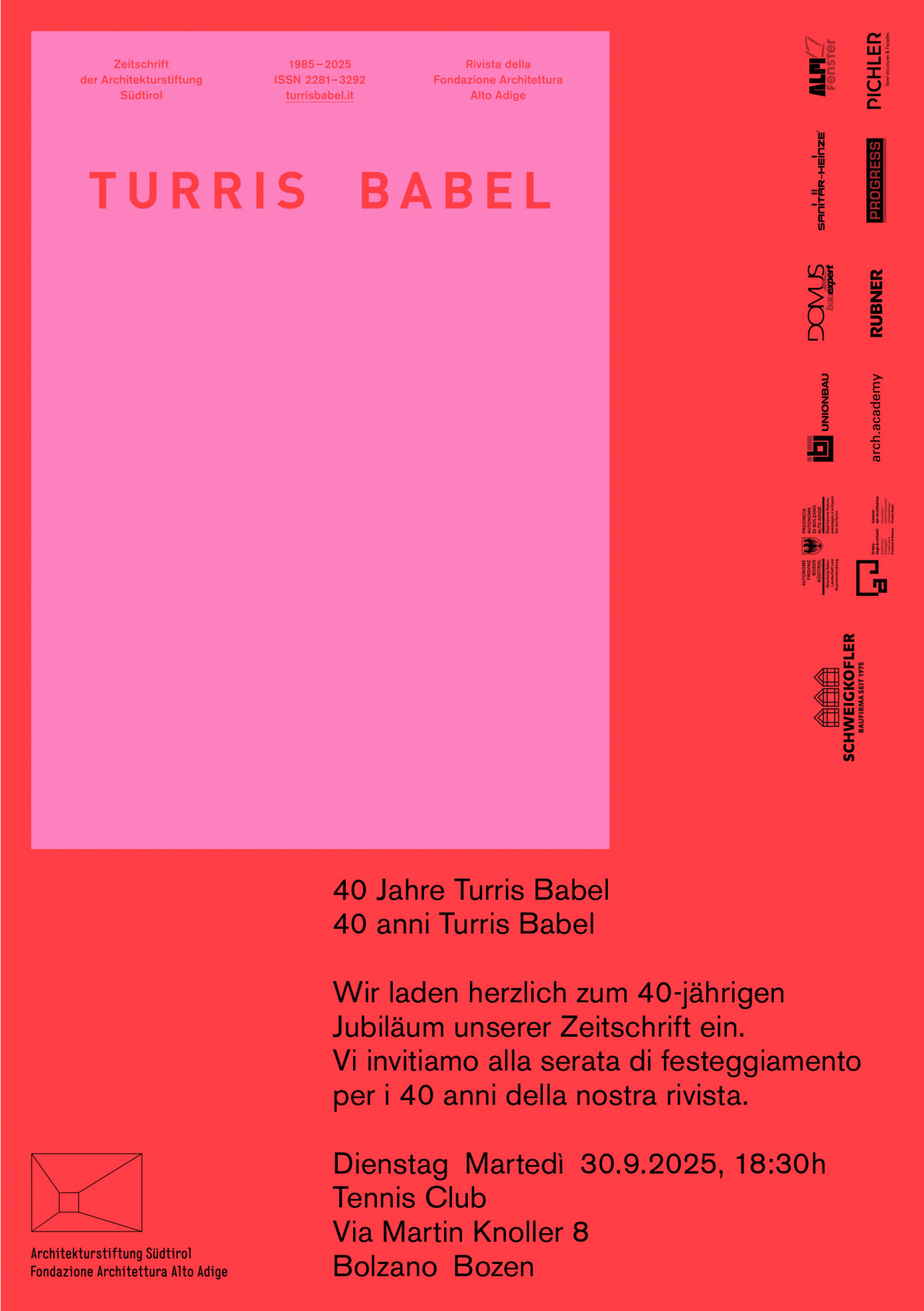Riguardare 40 anni di numeri di Turris Babel, vuol dire ripercorrere 40 anni di metodi e usi nella comunicazione del progetto architettonico sul territorio sudtirolese.