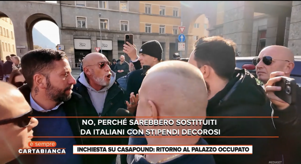 Nel servizio andato in onda martedì a “È sempre Cartabianca”, il giornalista Marco Sales accende i riflettori su uno dei simboli più longevi di CasaPound: il palazzo di via Napoleone III a Roma, occupato dal 2003 e ancora oggi al centro del dibattito politico e giudiziario. Il racconto parte da lì, con una frase che riassume il tono dell’inchiesta: “Sono settimane che stiamo cercando di parlare coi leader di CasaPound, invano”. Davanti alla sede romana, però, prima ancora di ottenere risposte dagli occupanti, Sales e la troupe si trovano davanti la Digos. “L’intervista la deve concordare con loro. Adesso identifichiamo tutto”, si sente dire dagli agenti. E il giornalista replica: “Io sto facendo attività di cronaca”. Poi lo sfogo: “Loro sono qui da 23 anni in maniera abusiva e voi controllate noi”. La sede di CasaPound è da oltre ventidue anni in uno stabile pubblico e già nel 2019 la Corte dei Conti parlava di assenza di “emergenza abitativa” e di un danno erariale superiore a 4,6 milioni di euro.