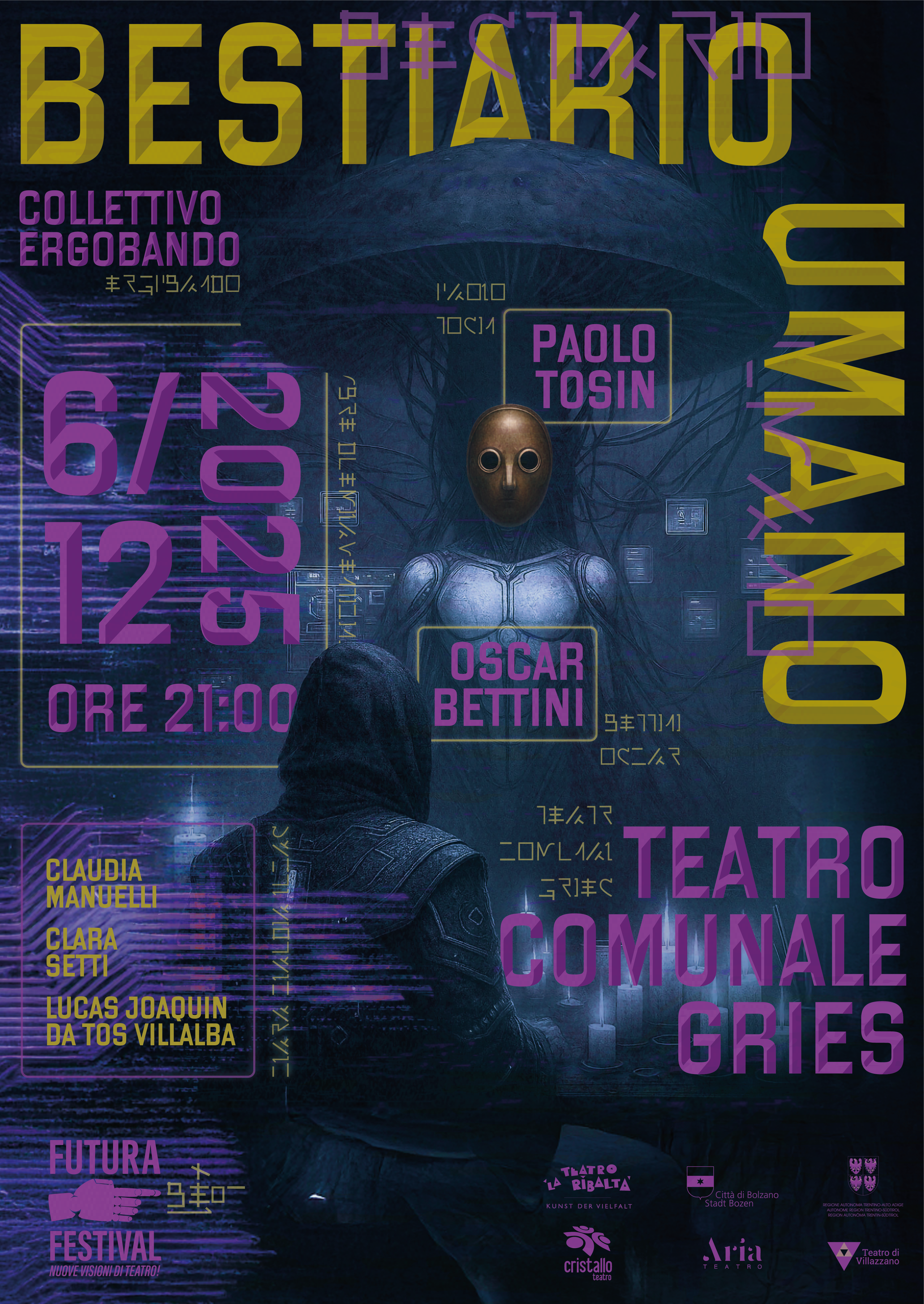 Un’ora di gesti, spasmi, maschere e vocalizzi primordiali: il collettivo Ergobando debutta con un ritratto fisico, grottesco e inquieto dell’umanità contemporanea. Il progetto, vincitore di FUTURA Festival 2025, trasforma il Teatro di Gries in un laboratorio in cui l’essere umano viene osservato quasi al microscopio, come una creatura in via di catalogazione.