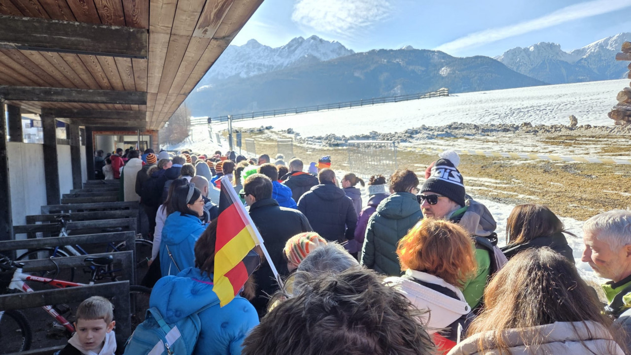 • Si scende a Olang alle 11.05. Il treno è così affollato che per scendere e risalire nel sottopassaggio ci vogliono quindici minuti buoni. Ma il peggio deve arrivare. La coda per i bus navetta è infinita. Riusciamo a salire alle 12.10. I poliziotti dicono che ci vorrà un quarto d’ora per arrivare a destinazione. Sì, nelle giornate normali. Dopo mezzora arriviamo ad Anterselva di mezzo. Bisogna scendere. Si fanno 500/700 metri a piedi e si arriva al piazzale dove partono gli Shuttle A per la Südtirol Arena (eravamo sugli shuttle B). In poco più di dieci minuti si arriva alla fermata. L’arena dista 700 metri. Gli ingressi per i controlli di sicurezza sono numerosi e qui, fortunatamente, l’attesa è minima. Quando arriva il nostro turno una tifosa germanica furibonda lancia il cellulare sul tavolo su cui vengono esaminati gli zaini. Le hanno appena detto che non può portarsi all’interno i biscotti senza glutine che si è portata da casa. “Ma sono celiaca – obietta - magari dentro non trovo da mangiare cose senza glutine”. Riescono a convincerla a mangiare i biscotti all’esterno. “In nessuna delle sedi di gara si può entrare con il cibo”, dicono. Sarà, ma è una follia non prevedere questo genere di eccezioni. “Le regole sono regole, non le facciamo noi”, dice l’incaricato. Mah.