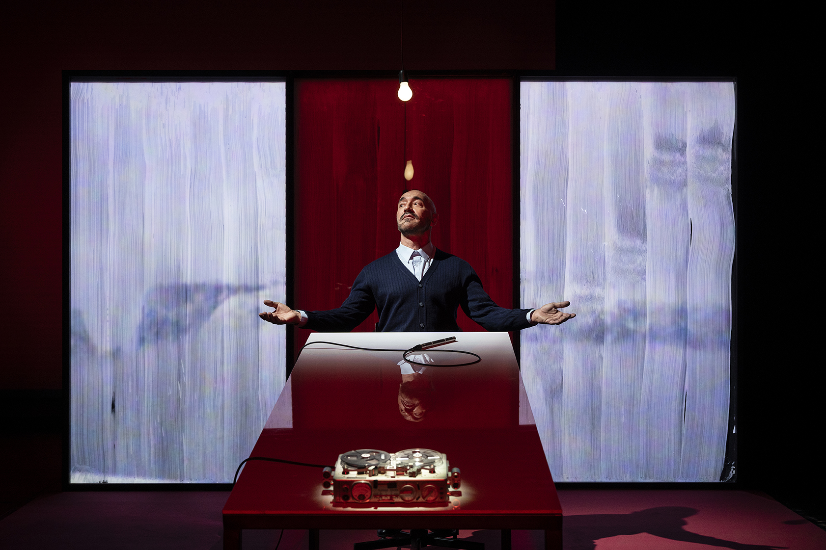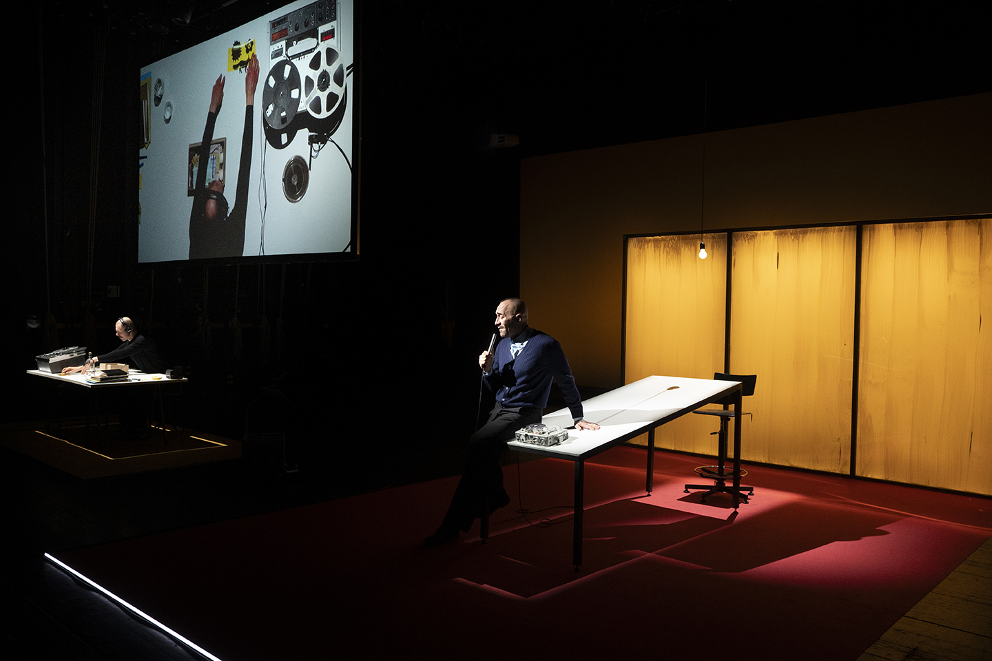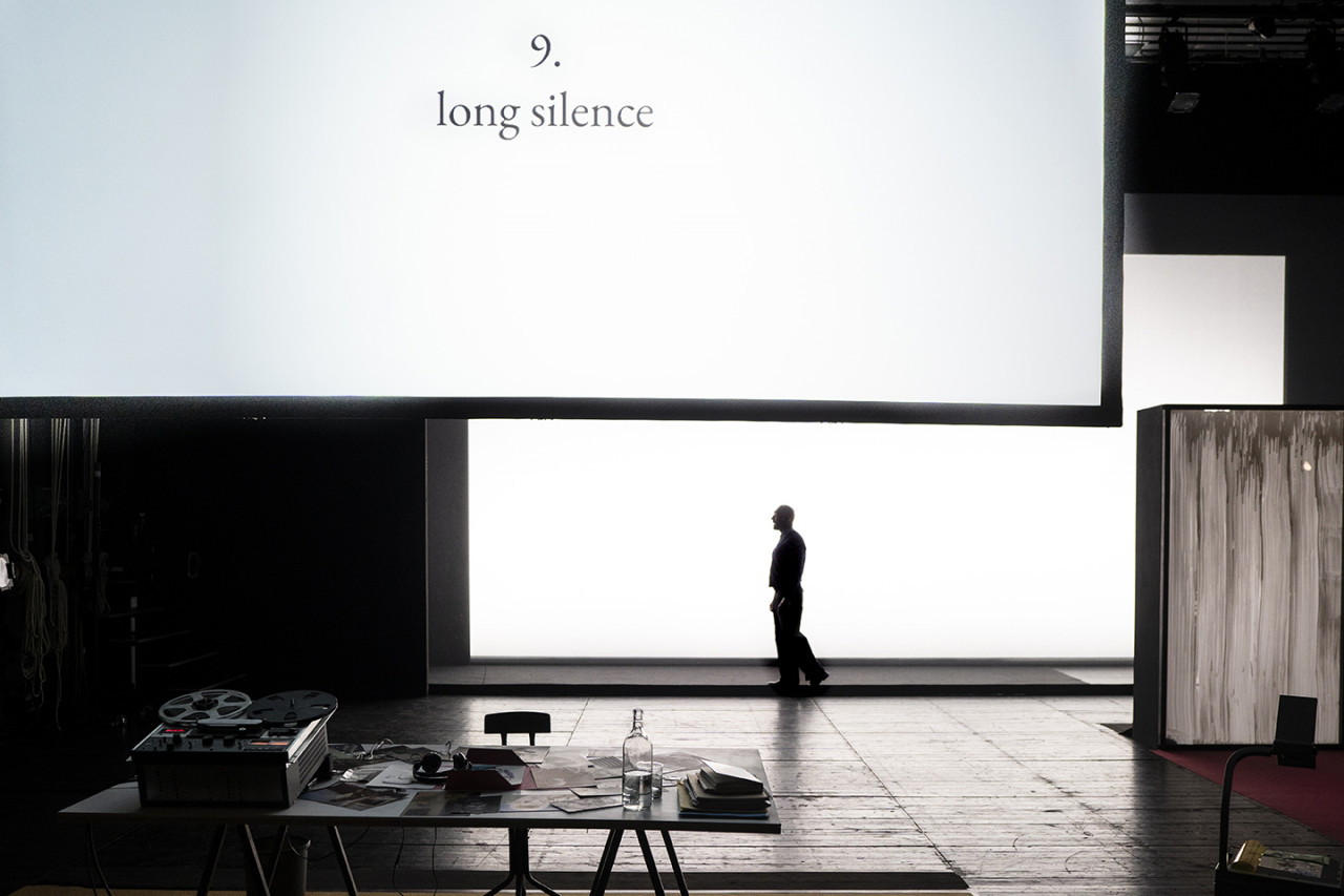 Così sul palco del Teatro Studio, oltre al dead man sono apparsi quattro personaggi, muti. Fin dall’inizio “il Detective”, che dalla sua scrivania raccoglie, esamina, ascolta e osserva gli oggetti della memoria. E poi il padre, la madre e la sorella . Un scena di forte impatto, anche grazie al design delle luci e dei video a firma rispettivamente di Veronica Varesi Monti e Francesco Cileo, e grazie al lavoro dei tanti collaboratori. Una scena che a nostro giudizio a tratti toglieva però “peso” alla musica e alla parola intonata.