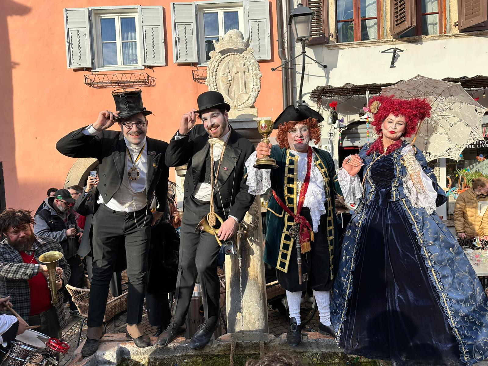 Schlüsselübergabe 2026 am Unsinnigen: Der große Perkeo-Umzug findet am Samstag ab 13 Uhr in Salurn statt. Am Karnevalsdienstag findet dann um 14 Uhr die Rückgabe der Schlüssels statt, ab 18 Uhr das symbolische Winteraustreiben (Brusar la vecia) Foto: PerkeoDer kleine Perkeo machte als Außenseiter und Weintrinker Karriere. Als junger Mann arbeitete er als Hofzwerg und später Mundschenk beim Kurfürsten von der Pfalz in Heidelberg. Angeblich war seine Antwort auf die Frage, ob noch ein Glas Wein getrunken werden sollte, stets eine Gegenfrage, die lautete: „Warum nicht?“, im Italienischen „perché no?“. Und daraus schusterten die Heidelberger den Namen Perkeo. Sogar der französische Schriftsteller Victor Hugo (1802–1885) befasste sich nach einem Besuch in Heidelberg mit der Geschichte des trinkfesten Perkeo. Oh là là.