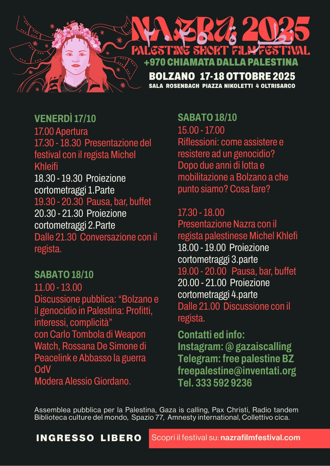 Nel contesto attuale sono parole allo stesso tempo più importanti e più lontane dalla realtà che mai - un progetto simile sembra oggi semplicemente impossibile. Khleifi, che raggiungiamo al telefono a Bruxelles alla vigilia del suo arrivo oggi a Bolzano, guarda alla realtà con una speranza temprata di realismo. “Certo che spero nella pace – chi non lo fa? Penso però che i rapporti di forza siano terribilmente a nostro sfavore. Se c’è al mondo un’ingiustizia assoluta che dura da un secolo, credo che sia la causa palestinese. Sono ormai quasi 120 anni che le cose vanno male per noi - dal 1905, con la dottrina dei movimenti sionisti che prevedeva la colonizzazione. Ora stanno negoziando su Gaza, mentre la colonizzazione continua in Cisgiordania. E le cose continueranno così, perché se si guarda la storia della Palestina, ogni volta che le potenze occidentali sono entrate in gioco è Israele a uscirne vincente.”