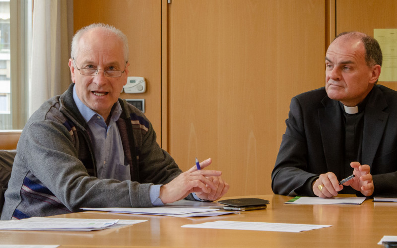 Eugen Runggaldier (vicario), Ivo Muser (vescovo), Don Gottfried Ugolini: quest'ultimo la scorsa settimana ha lasciato l'incarico di referente della Diocesi per la tutela dei minori e delle persone vulnerabili e di componente del gruppo direttivo del progetto "Il coraggio di guardare". Foto: Diözese Bozen-Brixen -