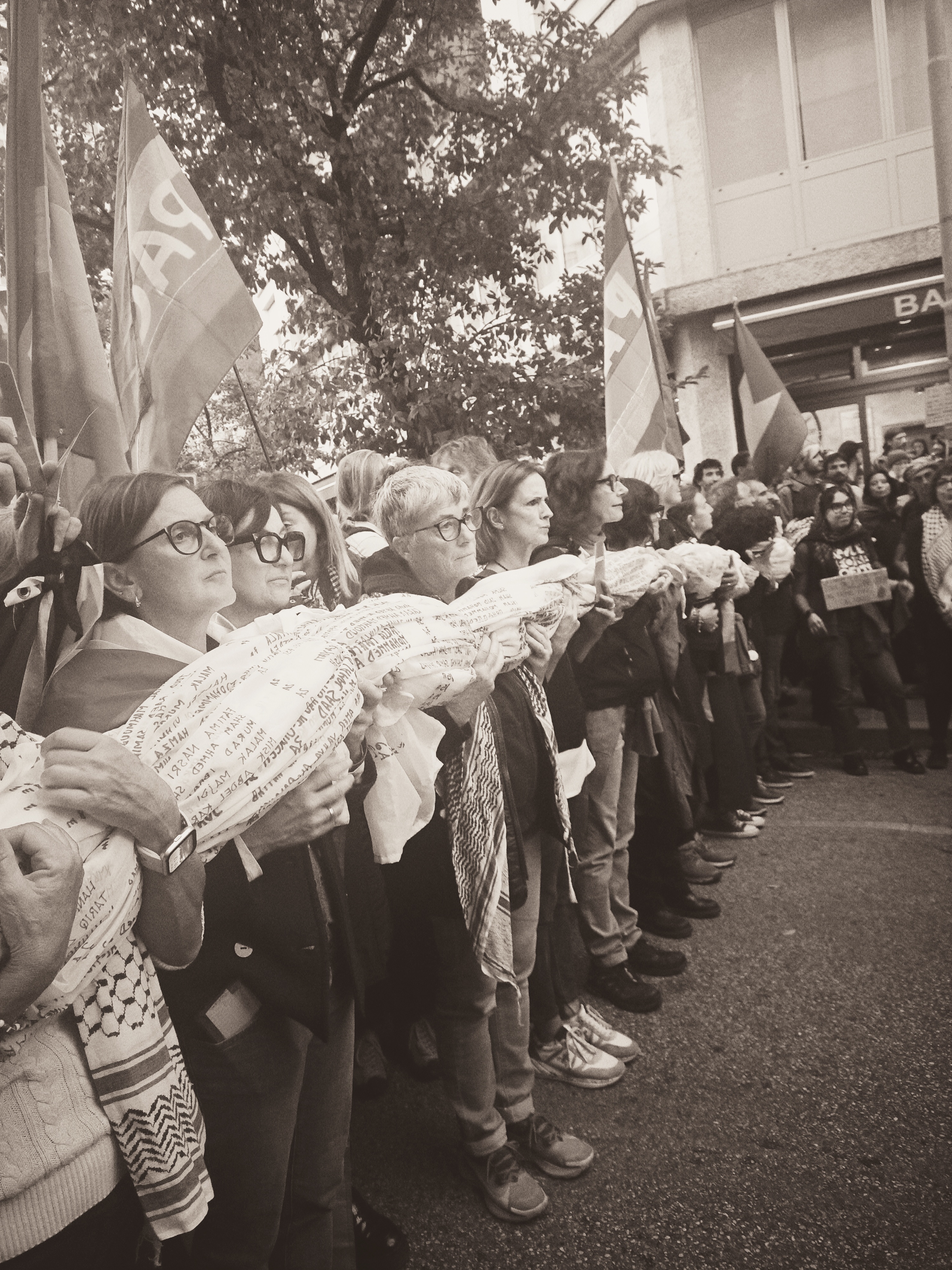 Immagini dalla manifestazione per la Palestina, il giorno della partita di calcio della vergogna Italia - Israele a Udine: la più forte è il sudario con 18mila nomi di bambini e ragazzi uccisi. E un pensiero sulla capacità (volontà?) di vederle e raccontarle.