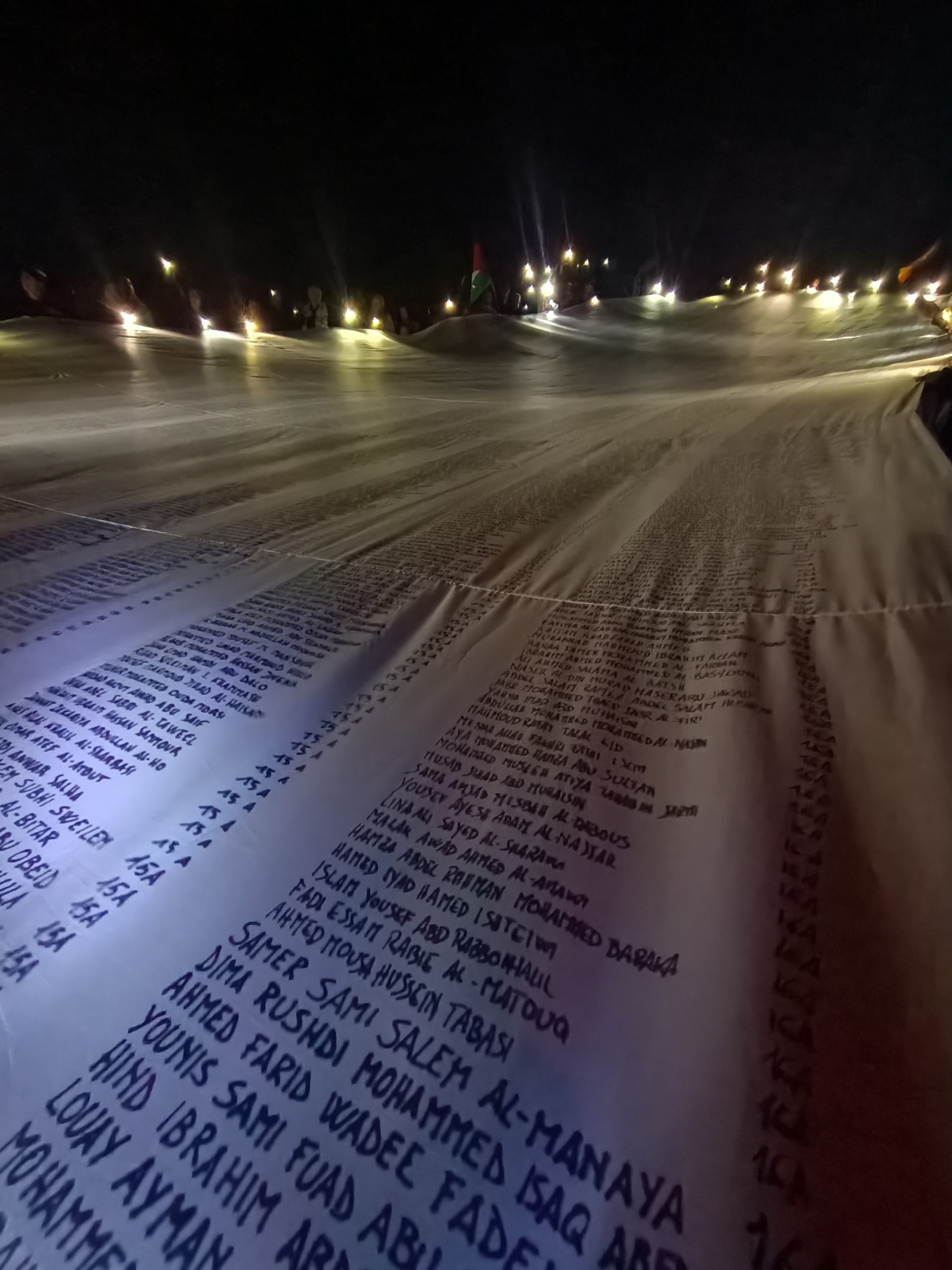 Il sudario con i nomi dei 18.457 bambini e ragazzi uccisi a Gaza