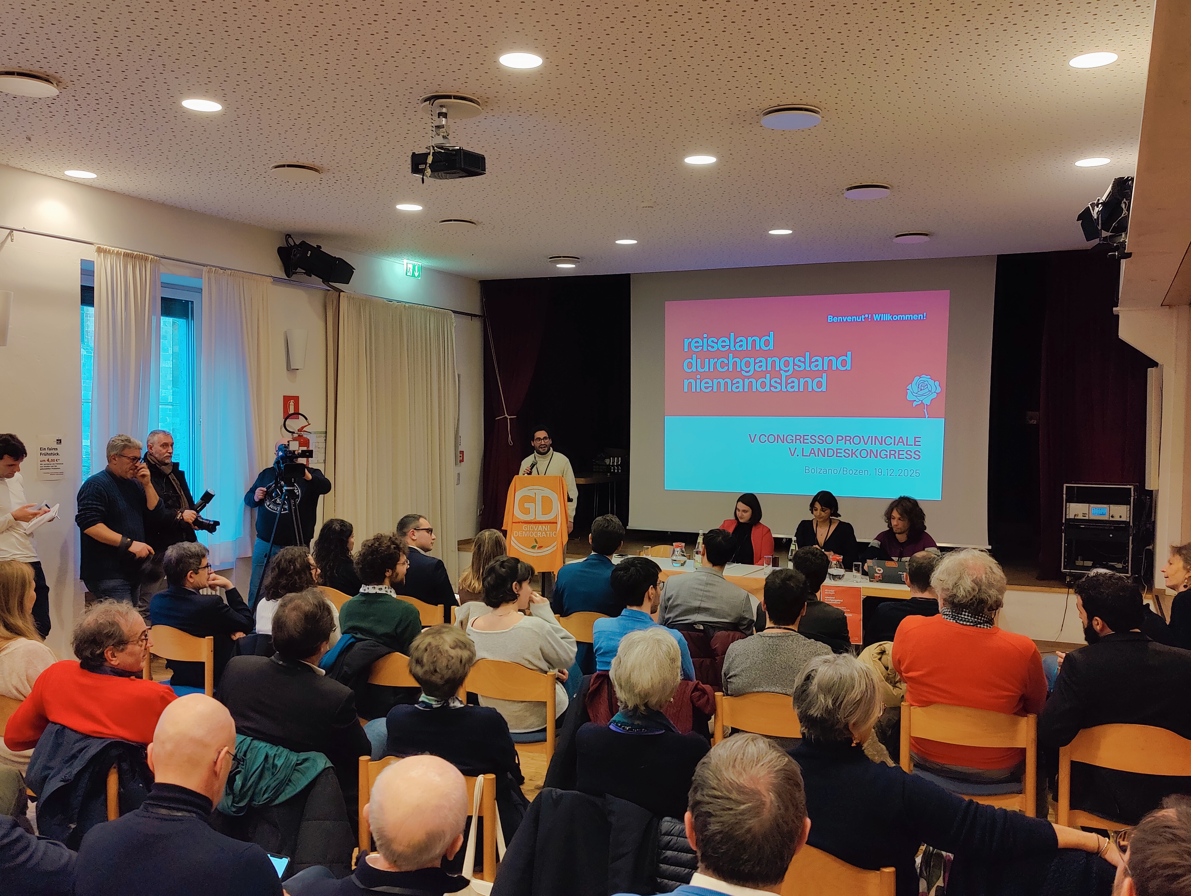 A prendere la parola, dopo i saluti del segretario uscente nonché assessore comunale a Merano, Daniele Di Lucrezia, è Ivan Gufler tesserato di Lana. "'Reiseland durchgangsland niemandsland'", sono le parole scelte da noi per il titolo di questo congresso provinciale", dice Gufler. "E sono le parole - precisa - che ha scelto Norbert Conrad Kaser, giovane poeta sudtirolese morto quasi 50 anni fa, per descrivere la sua terra, l’Alto Adige/Südtirol/Sudtirolo che lui amava e detestava allo stesso tempo".