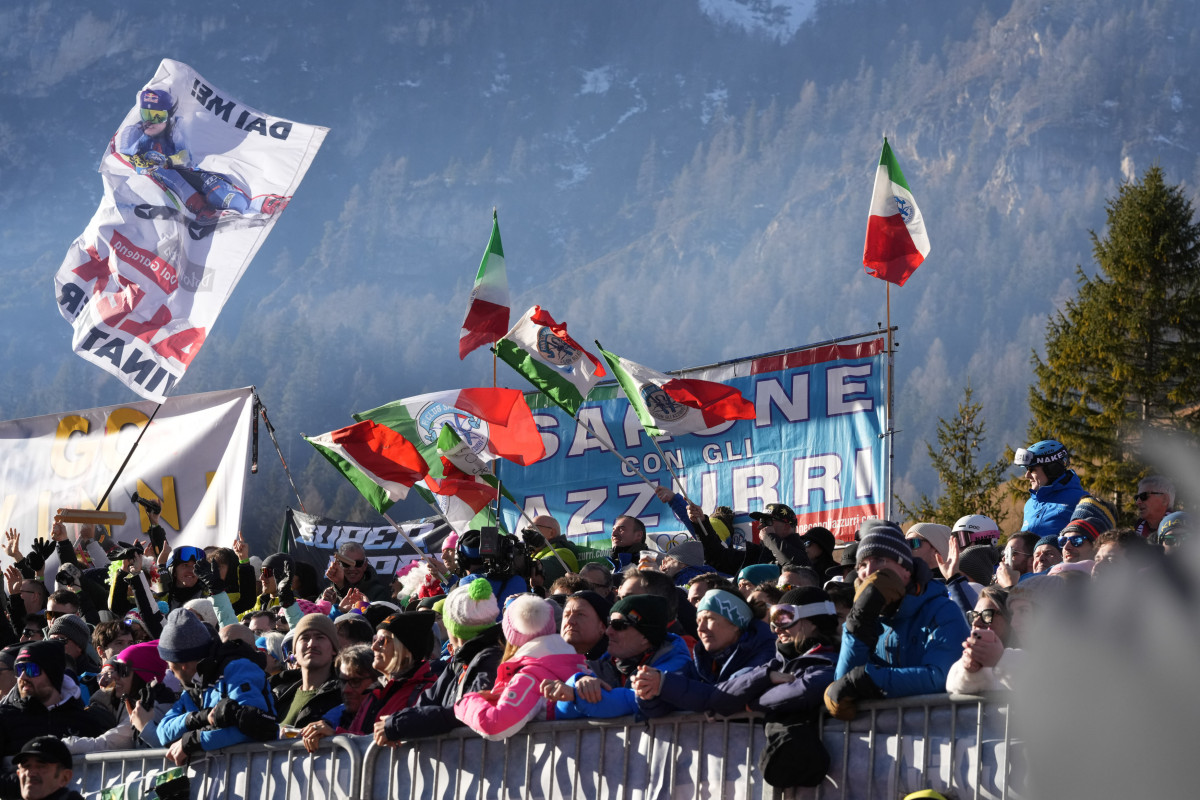 Alle 1.05 postmeridiane, un pelo in ritardo sul programma di massima, appare nei cieli l'iconica pattuglia delle Frecce Tricolori. I loro quattro passaggi radenti sopra il santuario badiota dello sci regalano la tradizionale quota parte d'entusiasmo, dal parterre agli anelli più elevati delle tribune. È tempo di seconda manche. Dove tutto potrebbe essere possibile, in condizioni nettamente diverse rispetto a tre ore e mezzo prima.