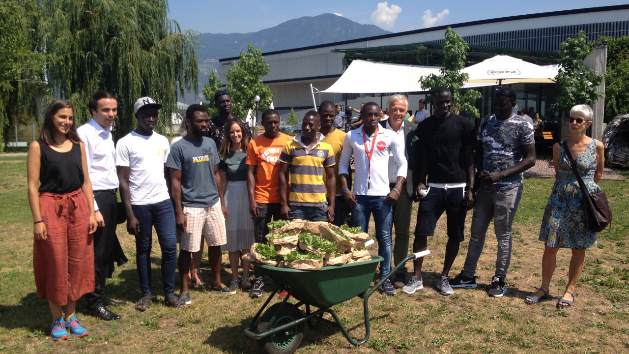 Auf 3.000 Quadratmetern werden im „Salewa Garten“, direkt neben dem Bivac Bistro, seit März über dreißig verschiedene Sorten Gemüse, Kräuter und Früchte angebaut. Ein professioneller Gärtner, fünf freiwillige Helfer*innen und sieben offizielle Partner unterstützen und begleiten das Projekt und die 15 Flüchtlinge mit Rat und Tat bei ihrer Arbeit. Zum Beispiel meldeten sich die Sterneköche Egon Heiss und Gregor Wenter, vom Restaurant Bad Schörgau im Sarntal, als Abnehmer der Produkte. Die Geräte wurden von der Landwirtschaftlichen Hauptgenossenschaft Bozen zur Verfügung gestellt und lagern zurzeit bei der Firma Niederstätter. Das Gardencenter Biasion liefert Pflanzen und kostbare Tipps und die Sozialgenossenschaft Officine Vispa half bei den bürokratischen Hürden und machte die „Gärtner“ zu Genossen der Genossenschaft.