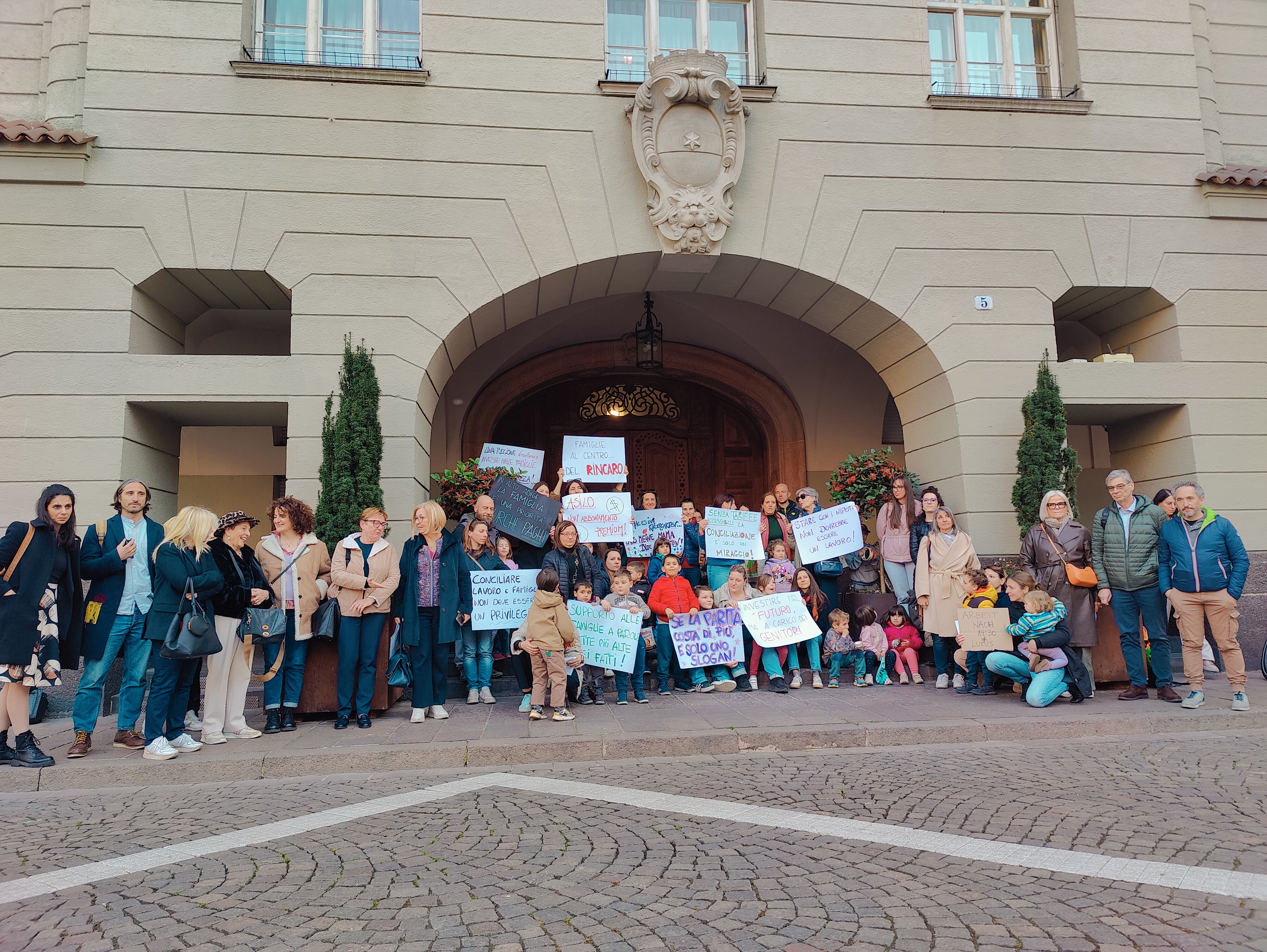 I genitori dei bambini iscritti alla scuola dell’infanzia lo avevano detto: se la Provincia non avrebbe fatto passi indietro sull'aumento delle tariffe sarebbero ritornati in piazza. E così è stato. Nella serata di oggi - martedì 24 marzo - una trentina di madri e padri ha svolto un presidio in piazza Municipio a Bolzano, mentre nel palazzo stava per iniziare una seduta del Consiglio Comunale. Quello di oggi è il secondo raduno dopo quello di martedì scorso.