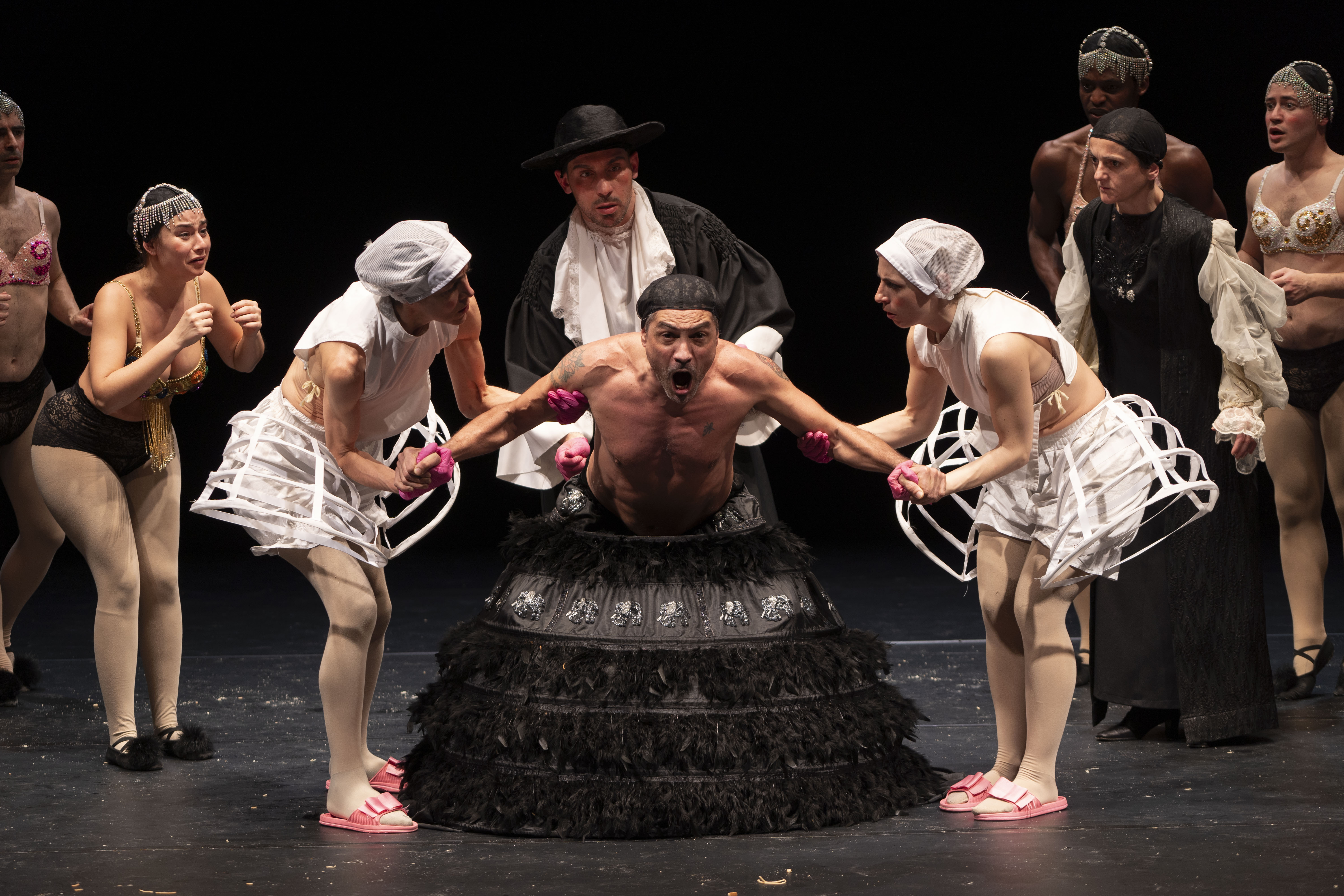 Si intitola “Re Chicchinella” lo spettacolo di Emma Dante in scena al Comunale di Bolzano nella stagione dello Stabile da giovedì 26 marzo alle 20.30 a domenica 29 (ven e sab. h. 19 e dom. h. 16.00). Artista siciliana conosciuta in tutto il mondo per il suo teatro dallo stile diretto, e coinvolgente, materico e carnale, Emma Dante è sinonimo di un teatro caratterizzato da una forte fisicità e da una profonda esplorazione delle dinamiche familiari e sociali. La sua opera è una costante ricerca della “materia viva” della scena, dove il corpo dell’attore diventa il fulcro dell’espressione emotiva. Tratto dalla fiaba de Lo cunto de li cunti ovvero lo trattenemiento de peccerille, meravigliosa raccolta di novelle in lingua napoletana che Giambattista Basile creò nel 1634, lo spettacolo conclude il progetto con cui Emma Dante ha attraversato l’immaginifico universo dello scrittore campano: dopo La Scortecata e Pupo di zucchero “Re Chicchinella” è un’altra favola capace di raccontare la profondità dell’animo umano tramite il gioco e l’ornamento della poesia barocca. In scena troviamo una compagnia compatta e affiatata composta da Angelica Bifano, Viola Carinci, Davide Celona, Roberto Galbo, Enrico Lodovisi, Yannick Lomboto, Carmine Maringola, Davide Mazzella, Simone Mazzella, Annamaria Palomba, Samuel Salamone, Stephanie Taillandier e Marta Zollet. Gli elementi scenici e i costumi sono curati dalla stessa Dante, le luci da Christian Zucaro. La coproduzione internazionale tra Piccolo Teatro di Milano – Teatro d’Europa, Atto Unico / Compagnia Sud Costa Occidentale, Teatro di Napoli – Teatro Nazionale, TSV – Teatro Nazionale, Carnezzeria, Les Célestins Théâtre de Lyon, Châteauvallon-Liberté Scène Nationale e Cité du Théâtre - Domaine d’O - Montpellier / Printemps des Comédiens vede la partecipazione di Odette Lodovisi. Protagonista della vicenda, che, come sempre, mescola elementi grotteschi, comici e tragici, è un re che, colto da un bisogno corporale, commette il tragico errore di impiegare un animale che crede morto, una gallina, per pulirsi le terga… La pennuta, tutt’altro che defunta, gli si incolla al didietro e risale su per le viscere, installandosi nelle interiora del sovrano. L’animale magico, come un verme solitario, divora tutto quello che il poveretto mangia, facendogli espellere uova d’oro. Stremato dalla cosa, il re decide di lasciarsi morire di fame, incontrando l’opposizione di tutta la corte, che non vuole privarsi delle uova d’oro.