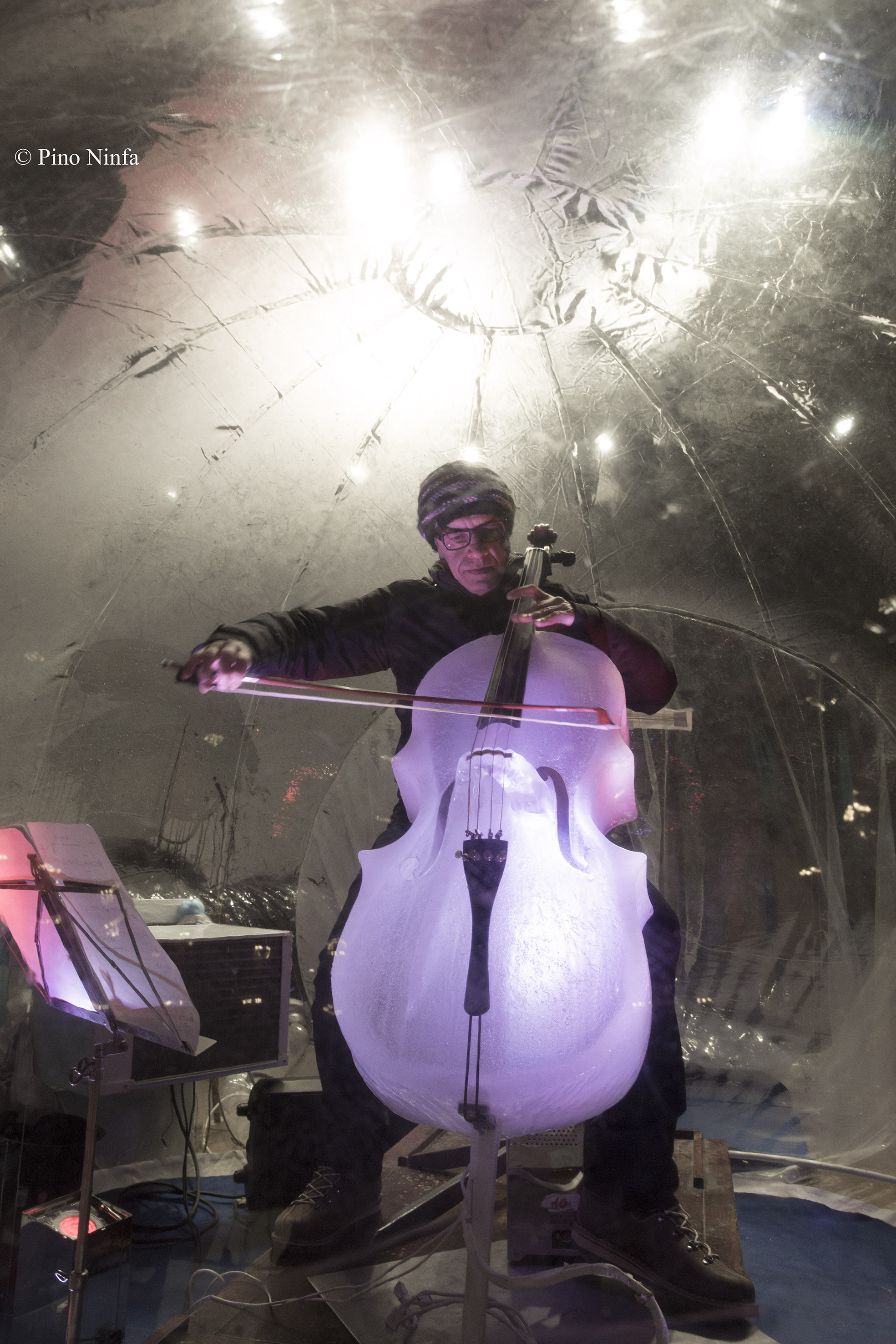 Il violoncello di ghiaccio viene amplificato, vi sono dei processori a modificare il suono?