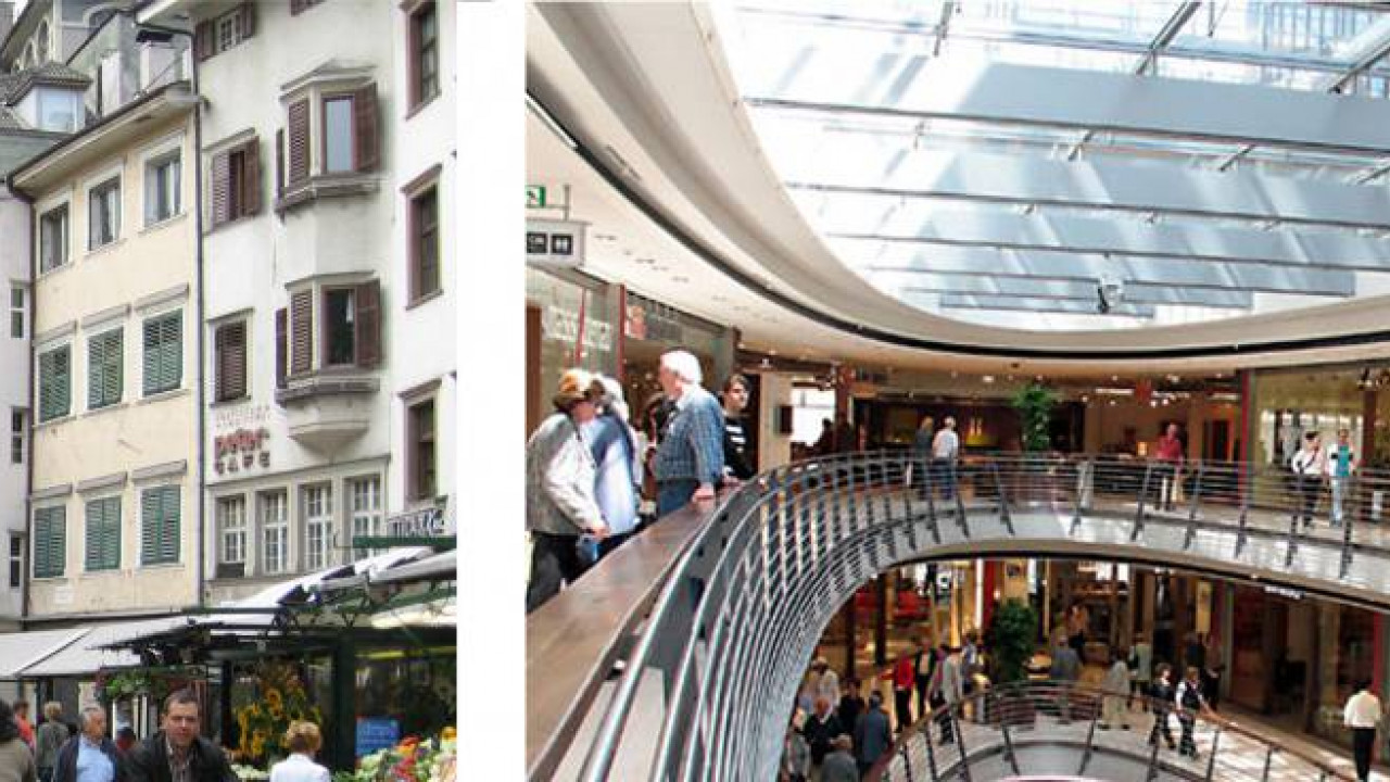 - die engen Gassen der teils mittelalterlichen Innenstädte sind äußerst schlecht für die Präsentation von internationalen Produkten und groß angelegten Marketingstrategien geeignet, da Sie zu eng und unübersichtlich sind. Das EKZ kann dies viel besser und so werden dort jene Waren ansiedeln, die von einer globalisierten Gesellschaft so begehrt werden.